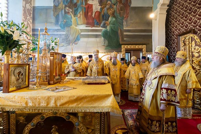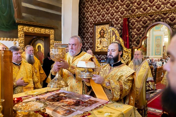 За Литургией возносились молитвы об упокоении: протоиерея Никифора и Марии Могилевских – родителей святителя Николая Алма-Атинского; исповедника веры митрополита Иосифа (Чернова), архимандрита Исаакия (Виноградова), православных христиан «в годину лютых гонений от безбожников умученных и убиенных, от голода, холода, ран, болезней и непосильных работ скончавшихся»; новопреставленных иеромонаха Серафима (Петровского) и архидиакона Василия (Крюкова).