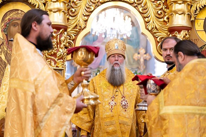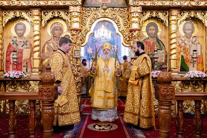 Божественную Литургию возглавил Предстоятель Православной Церкви Казахстана митрополит Астанайский и Казахстанский Александр.
