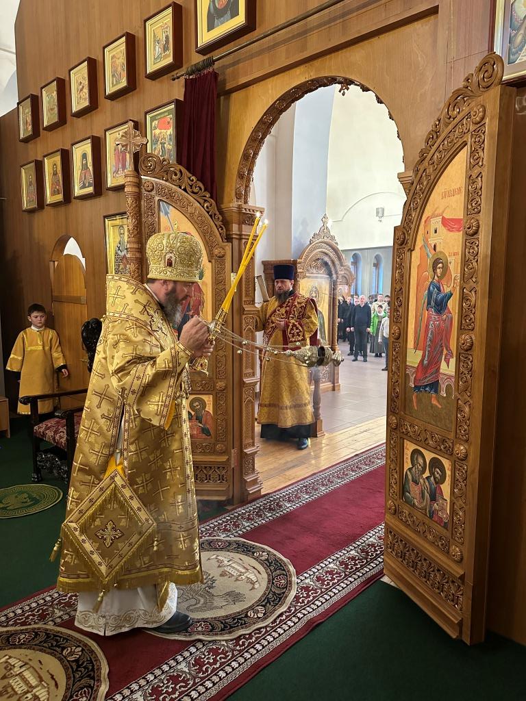 После окончания проповеди архиепископ Амфилохий призвал Божие благословение на всех молящихся и окропил прихожан святой водой.