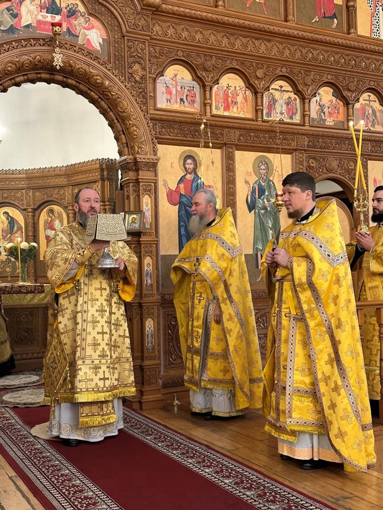 Перед причастием мирян проповедовал священник Виталий Адаменков. После завершения воскресного богослужения Владыка архиепископ поздравил духовенство и паству с воспоминанием Воскресения Господня; затем архиепископ Амфилохий обратился к прихожанам со словами поучения.