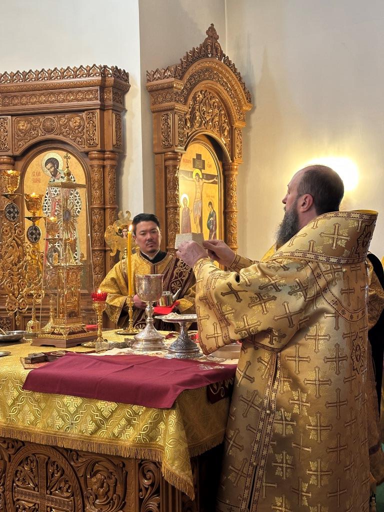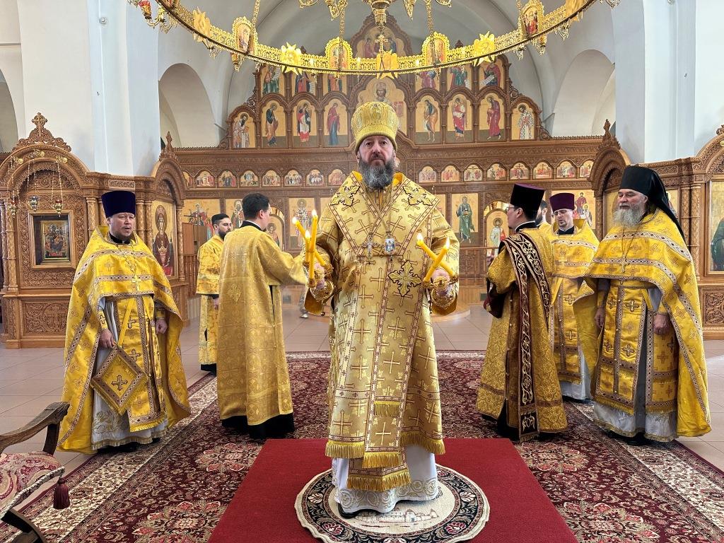 Управляющий Усть-Каменогорской и Семипалатинской епархией Высокопреосвященнейший архиепископ Амфилохий возглавил служение Божественной Литургии святителя Иоанна Златоуста в Андреевском кафедральном соборе столицы Восточного Казахстана. Его Высокопреосвященству сослужили: ключарь кафедрального собора иеромонах Никодим (Авдеев), клирики собора иерей иерей Роман Подрезов, иерей Константин Дьяков, протодиакон Андрей Дудник, секретарь епархии диакон Илия Кван, диакон Кирилл Рамазанов.