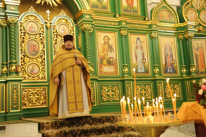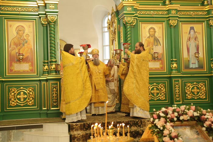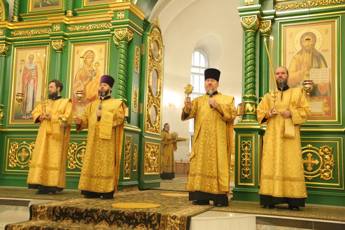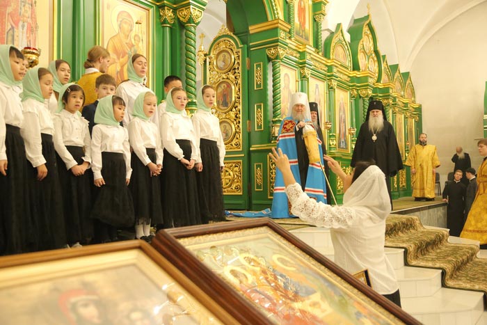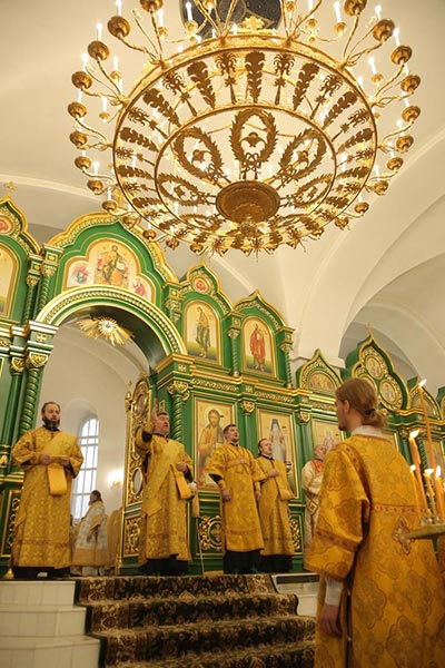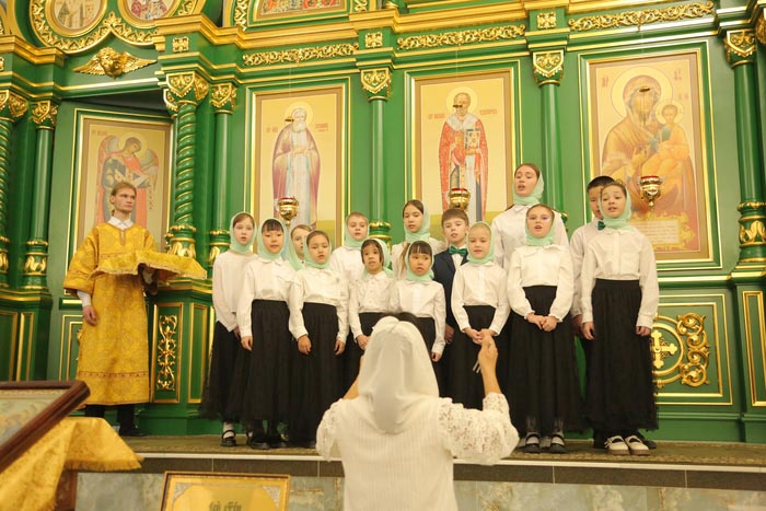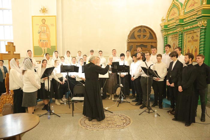 Богослужебные песнопения исполнил архиерейский хор Карагандинской епархии под управлением В. Тесленко.