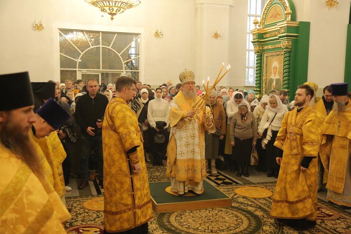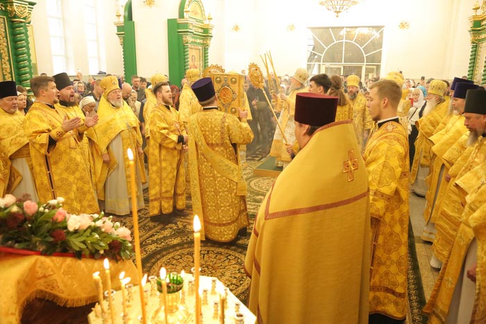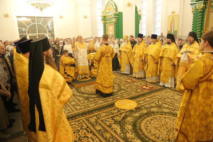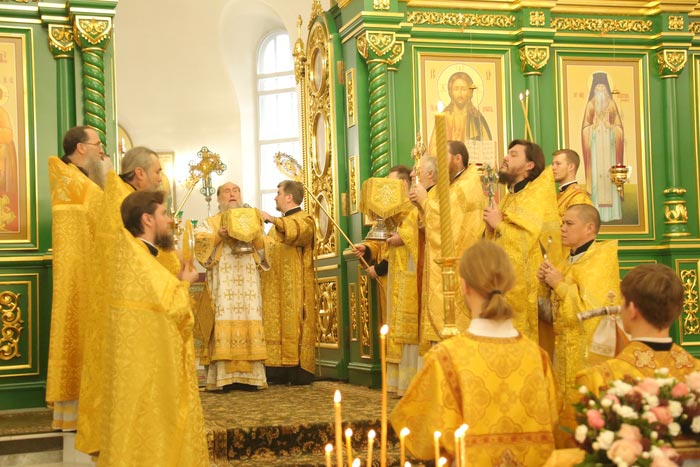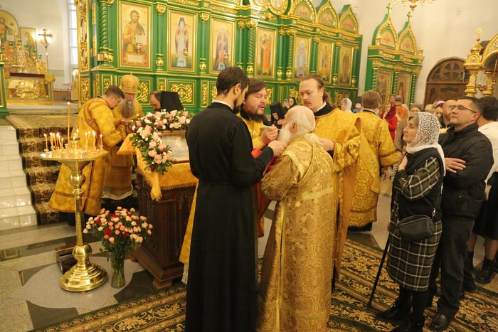 В завершение Литургии было возглашено многолетие Предстоятелю Русской Православной Церкви Святейшему Патриарху Московскому и всея Руси Кириллу; Главе, епископату, духовенству и пастве Казахстанского Митрополичьего округа; Президенту, властям, воинству и всему народу Казахстана.