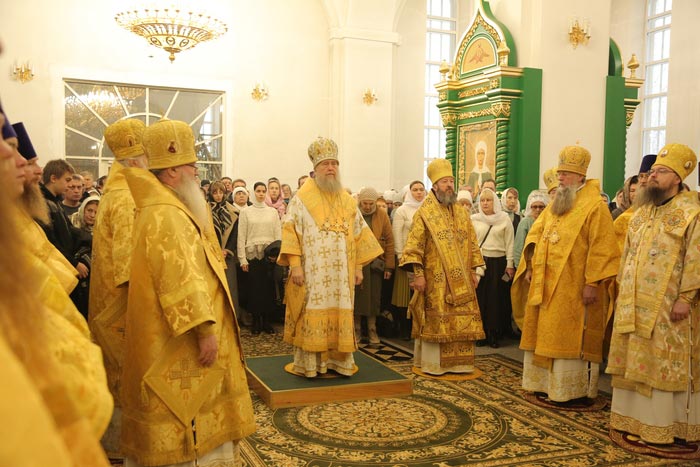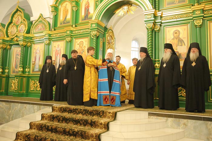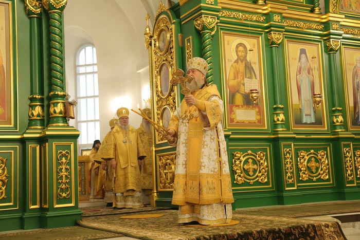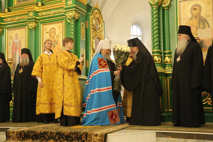 Его Высокопреосвященству сослужили: архиепископ Карагандинский и Шахтинский Севастиан, архиепископ Усть-Каменогорский и Семипалатинский Амфилохий, архиепископ Кокшетауский и Акмолинский Варсонофий, викарий Астанайской епархии епископ Талдыкорганский Клавдиан, епископ Чимкентский и Туркестанский Хрисанф, епископ Уральский и Атырауский Вианор.