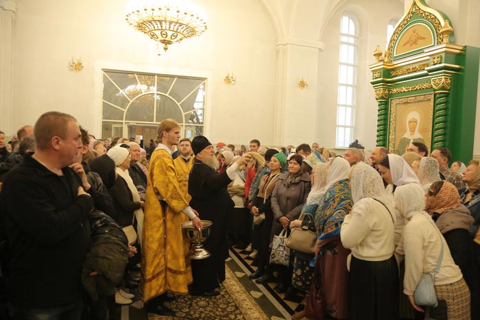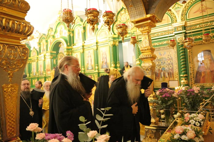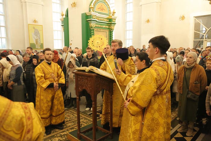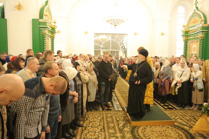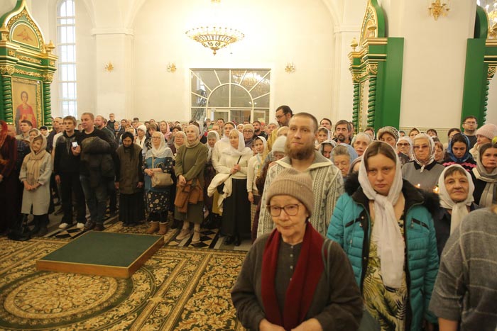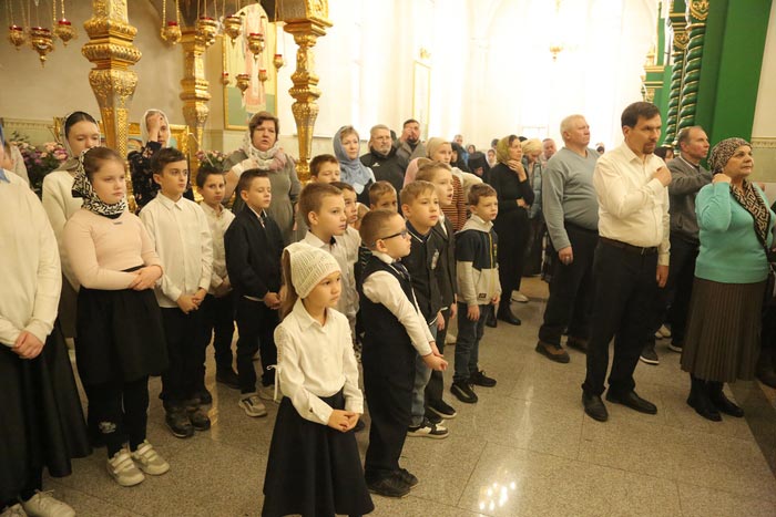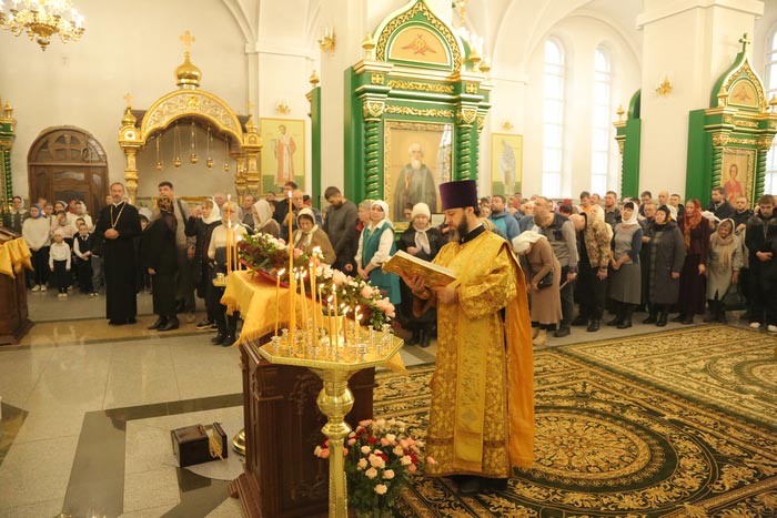 За Литургией молились: духовное чадо и ученик преподобного старца Севастиана Карагандинского – духовник Богородице-Рождественского женского монастыря архимандрит Петр (Горошко); настоятельница Богородице-Рождественского монастыря Караганды игумения Олимпиада (Салопеко) с насельницами обители; сотрудники Карагандинского епархиального управления; учащиеся воскресных школ.