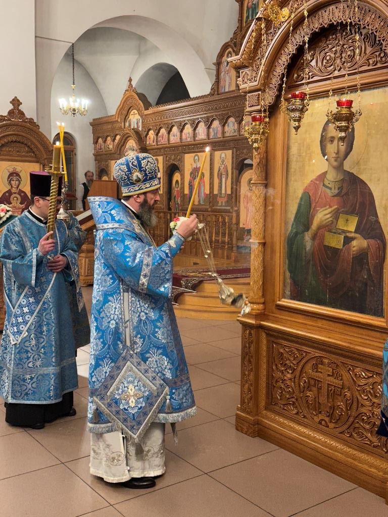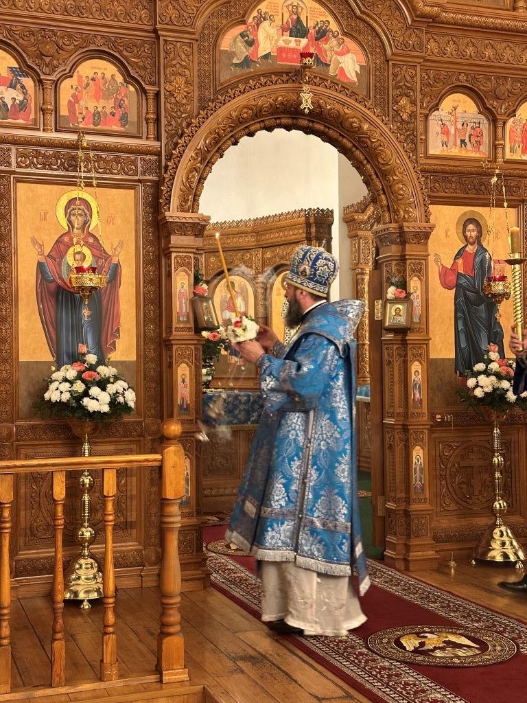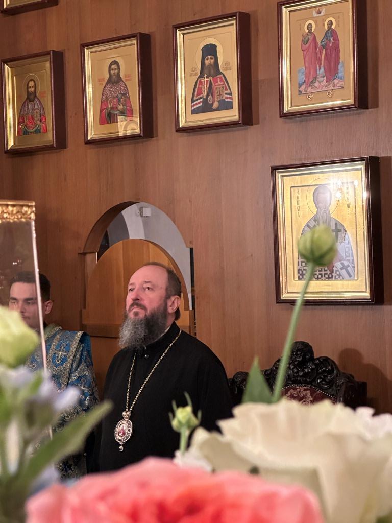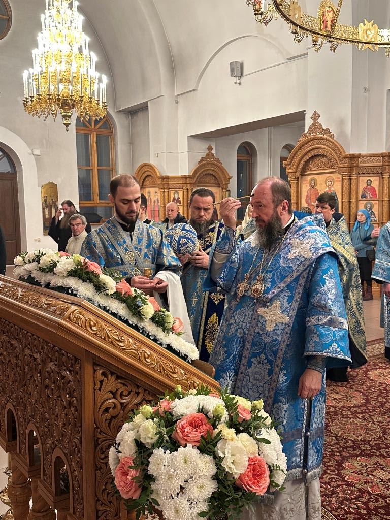 За богослужением совершалась лития – уставное моление с освящением хлеба, пшеницы, вина и елея. Хор под управлением регента В. Федоровой исполнял праздничные песнопения. После прочтения евангельского зачала Владыка архиепископ помазал духовенство освященным елеем.