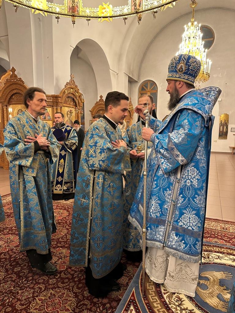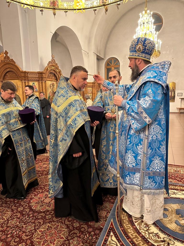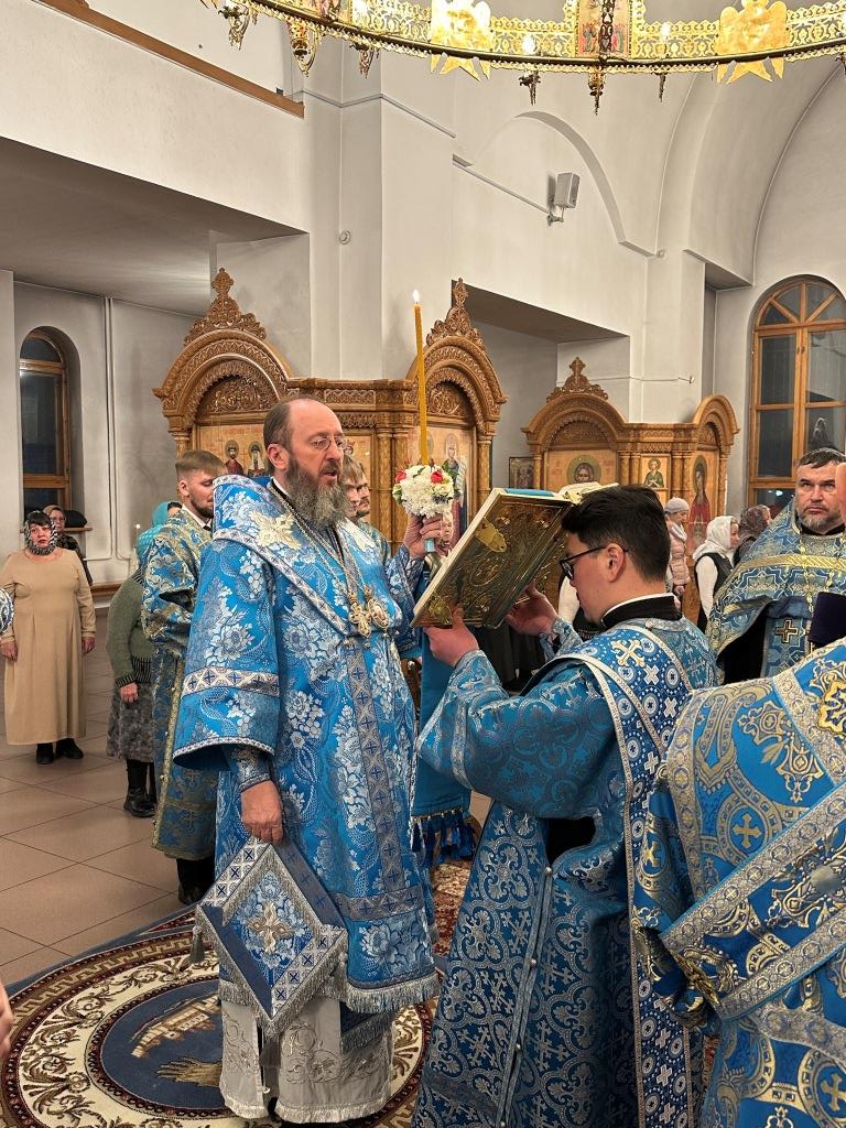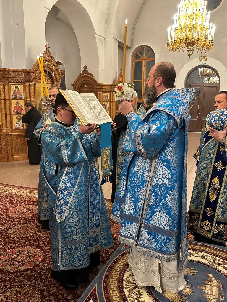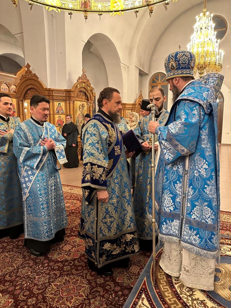 Высокопреосвященнейший архиепископ Усть-Каменогорский и Семипалатинский Амфилохий совершил праздничное всенощное бдение в кафедральном соборе во имя святого апостола Андрея Первозванного. Владыке архиепископу сослужили: ключарь собора иеромонах Никодим (Авдеев), клирики собора иерей Виталий Адаменков, иерей Роман Подрезов, иерей Константин Дьяков, протодиакон Андрей Дудник, секретарь епархии диакон Илия Кван, диакон Кирилл Рамазанов.
