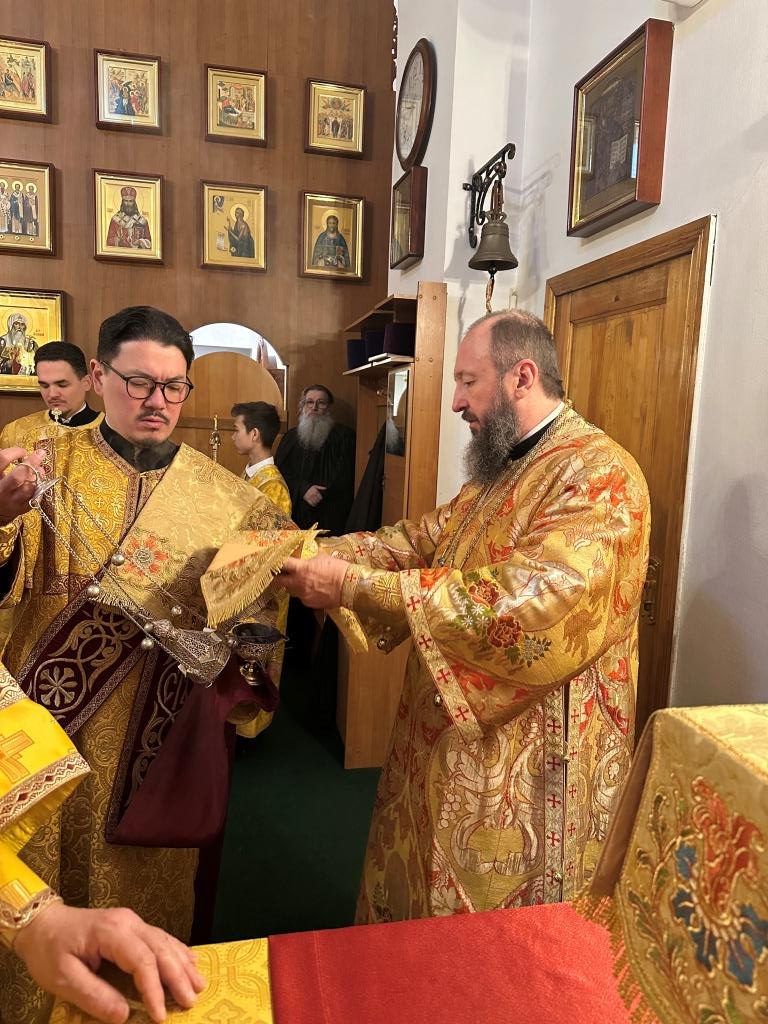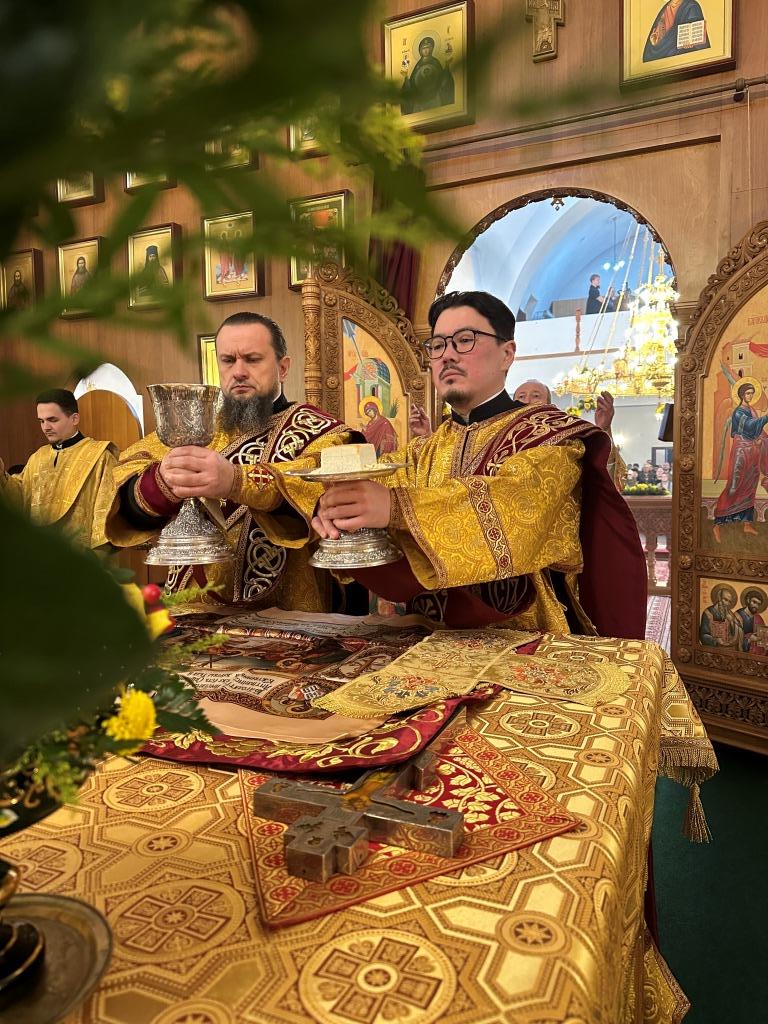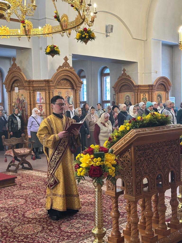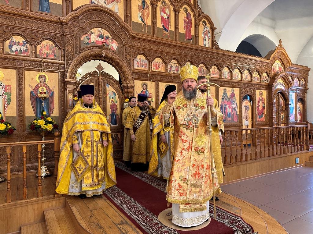 Песнопения Божественной Литургии исполнял хор Андреевского собора под управлением регента Н. Романцовой. За богослужением молились и причащались Святых Христовых Таин прихожане главного храма епархии, сотрудники епархиального управления, насельники Свято-Троицкого мужского монастыря города Усть-Каменогорска, преподаватели и ученики Центральной воскресной школы. Перед причастием мирян проповедовал священник Роман Подрезов.