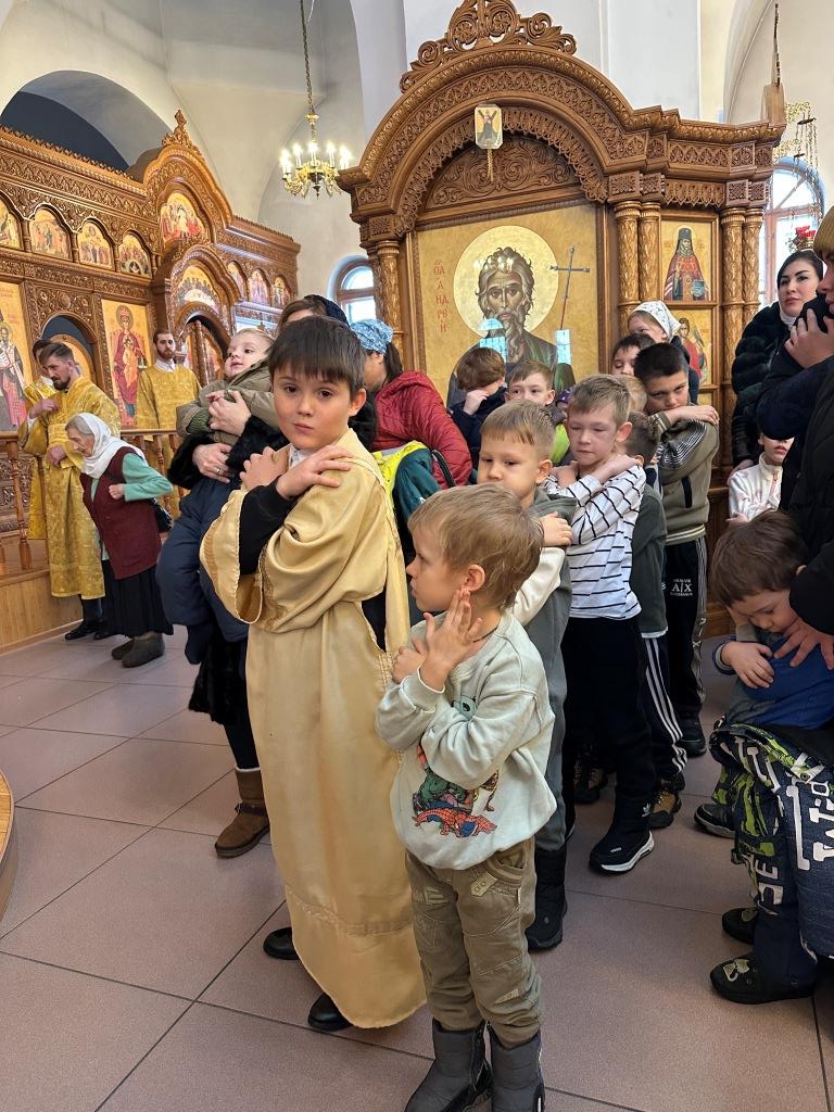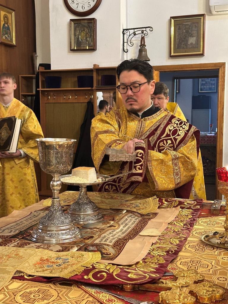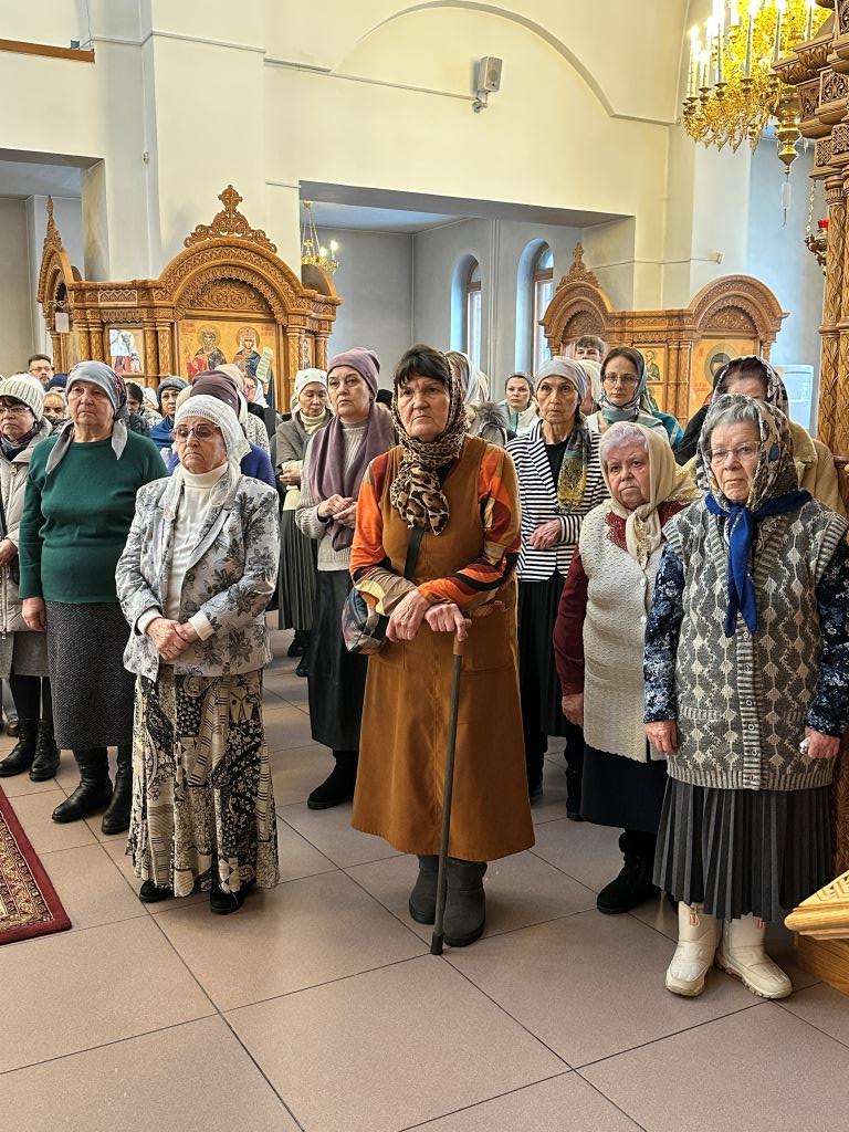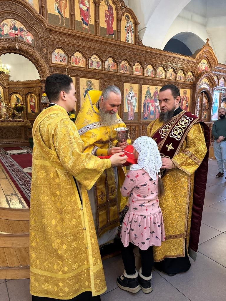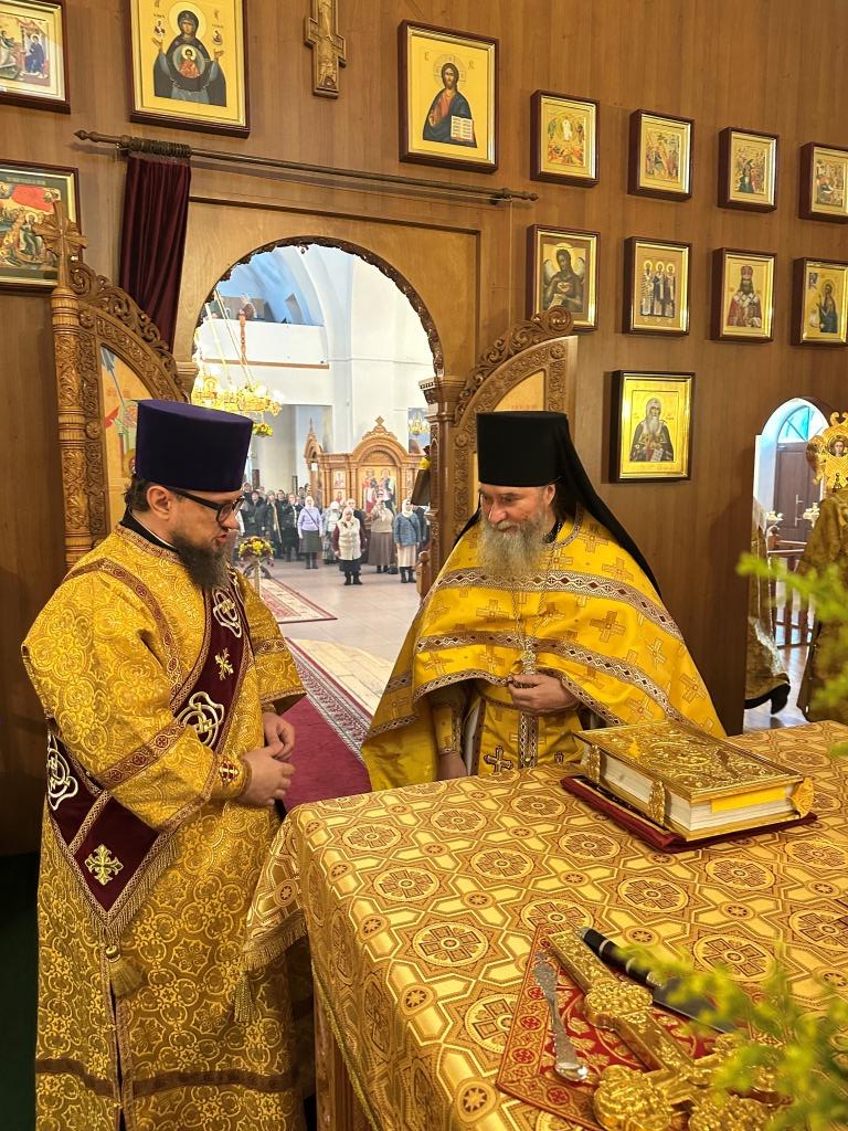 Песнопения Божественной Литургии исполнял хор Андреевского собора под управлением регента Н. Романцовой. За богослужением молились и причащались Святых Христовых Таин прихожане главного храма епархии, сотрудники епархиального управления, насельники Свято-Троицкого мужского монастыря города Усть-Каменогорска, преподаватели и ученики Центральной воскресной школы. Перед причастием мирян проповедовал священник Роман Подрезов.