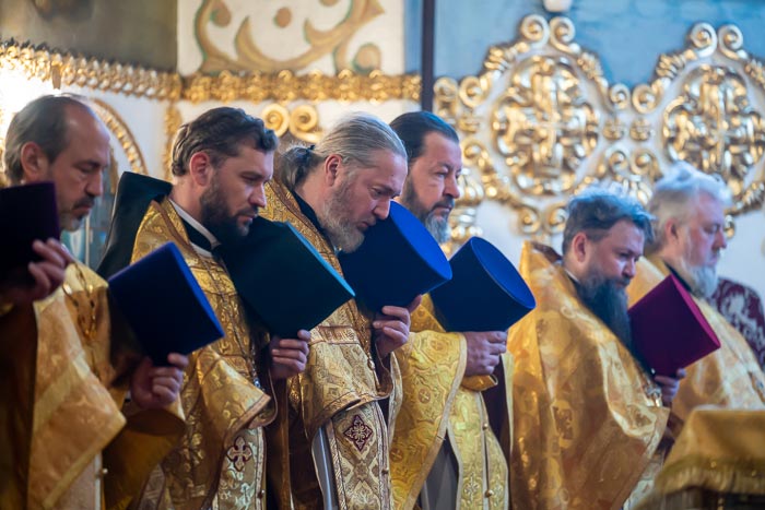 Богослужебные песнопения исполняли: хор Никольского собора под управлением О. Берекешевой и обиходный хор под управлением О. Соломоновой.