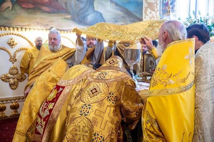 После херувимской песни митрополит Александр совершил священническую хиротонию диакона Владислава Пашкова, клирика Никольского собора, кандидата богословия, заведующего церковно-практической кафедрой Алма-Атинской духовной семинарии и сотрудника информационно-издательского отдела Митрополичьего округа.