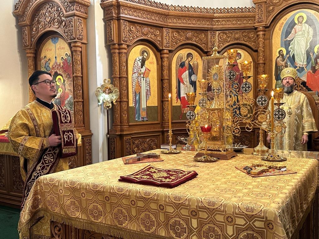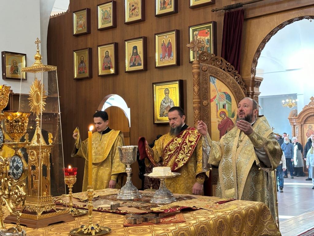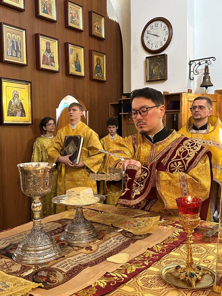 Высокопреосвященнейший архиепископ Усть-Каменогорский и Семипалатинский Амфилохий совершил Божественную Литургию святителя Иоанна Златоуста в Андреевском кафедральном соборе. Его Высокопреосвященству сослужили: ключарь кафедрального собора иеромонах Никодим (Авдеев), клирик собора иерей Константин Дьяков, протодиакон Андрей Дудник, секретарь епархии диакон Илия Кван, диакон Кирилл Рамазанов.