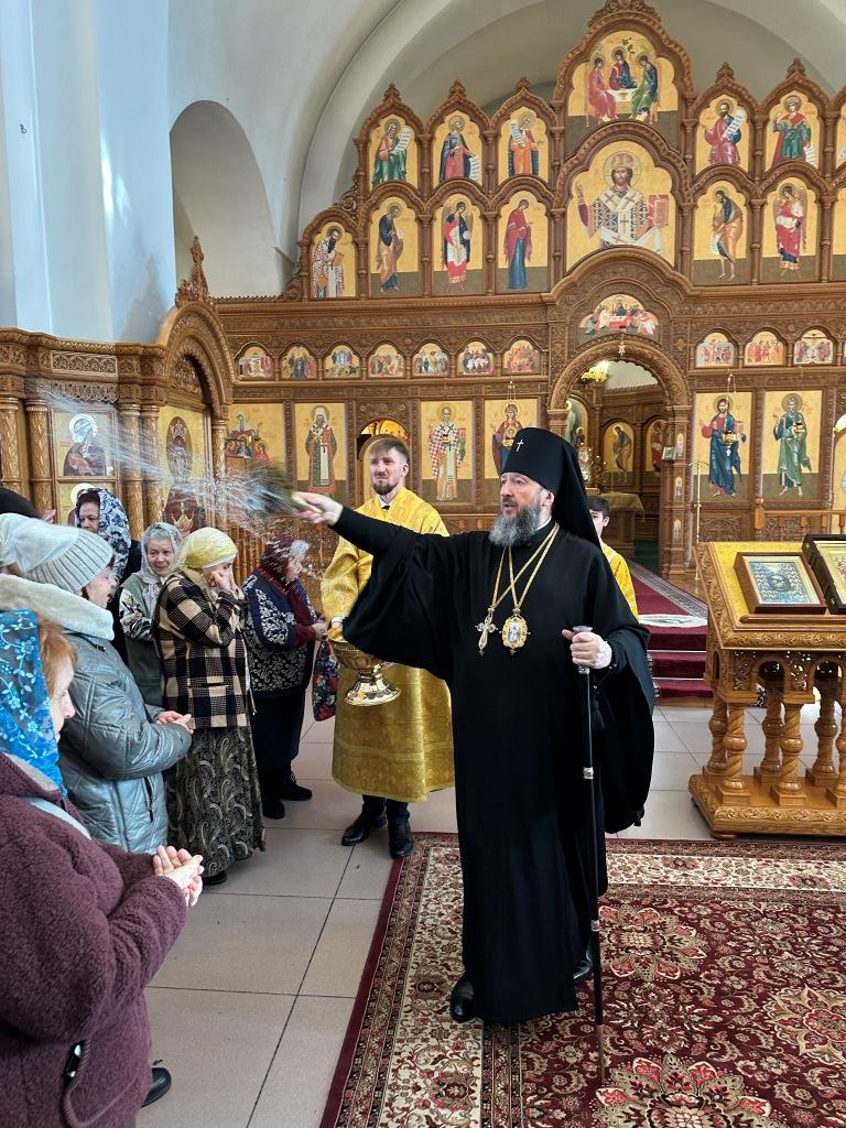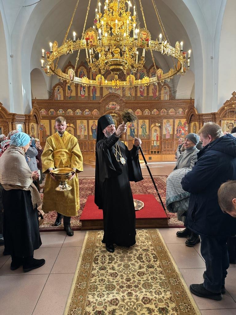 Затем Высокопреосвященнейший Архипастырь призвал Божие благословение на паству и окропил народ Божий святой водой.