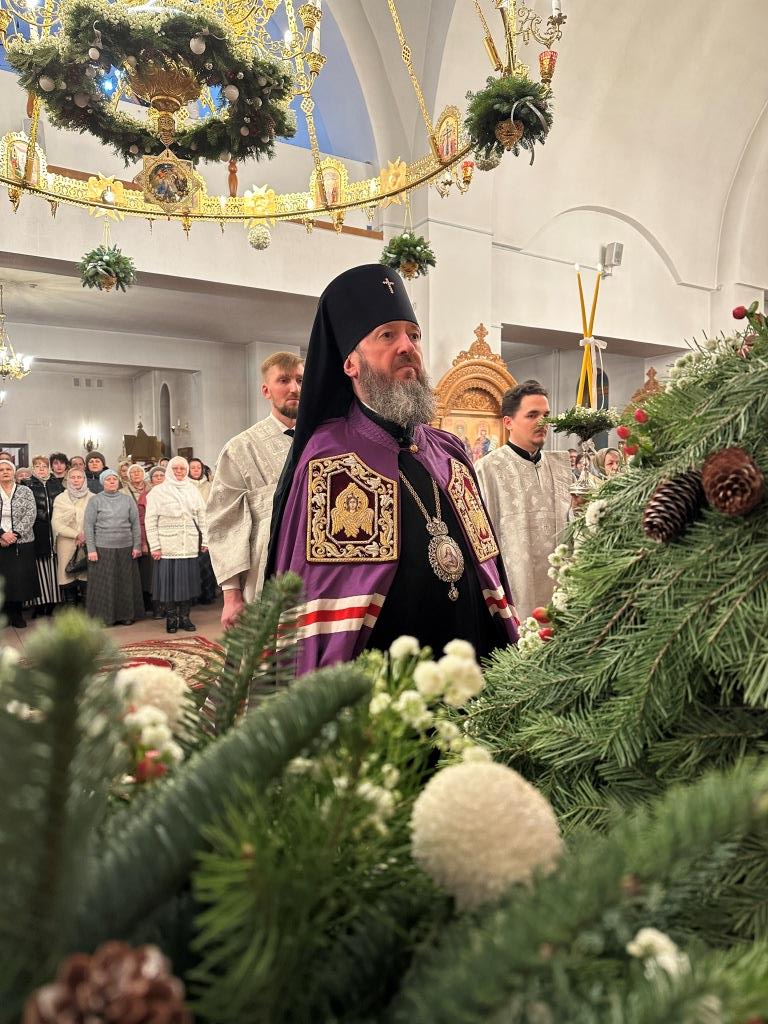 За праздничным ночным богослужением Архипастырю сослужили: ключарь кафедрального собора иеромонах Никодим (Авдеев), клирик собора иерей Роман Подрезов, протодиакон Андрей Дудник, секретарь епархии диакон Илия Кван, диакон Кирилл Рамазанов. Песнопения великого праздника Рождества исполнял хор Андреевского собора под управлением регента Н. Романцовой.