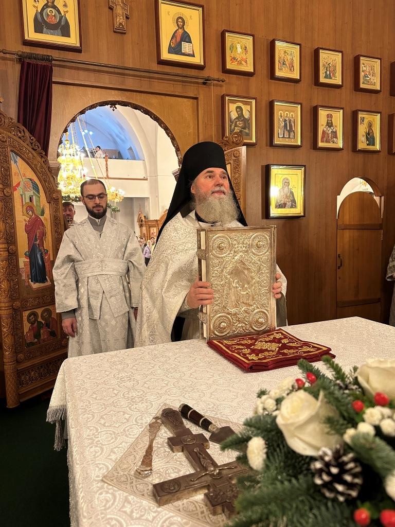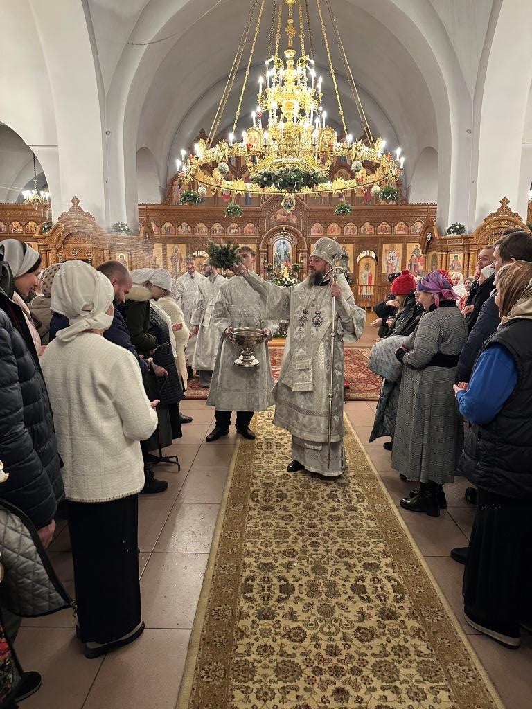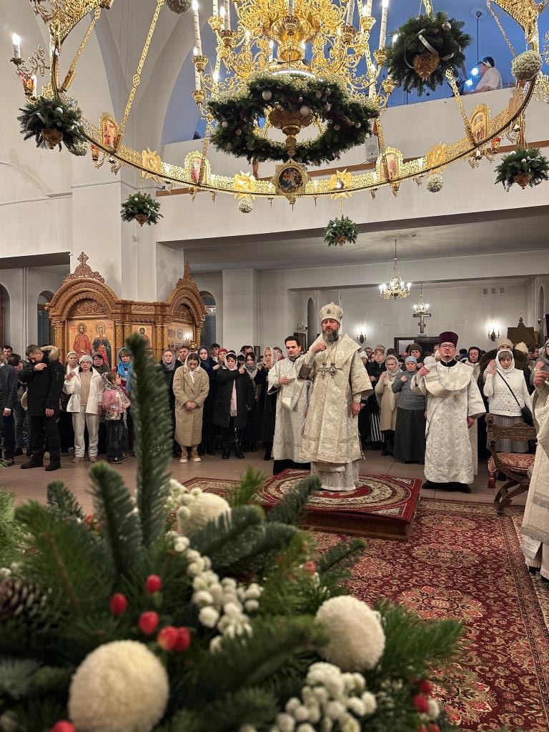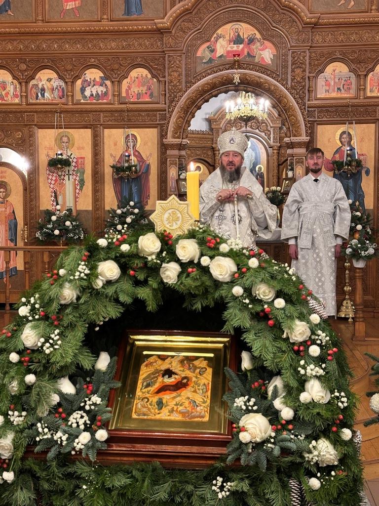 После окончания Божественной Литургии Архипастырь с духовенством и народом Божиим воспел славление Богомладенцу Еммануилу у праздничной иконы. В завершение праздничного богослужения архиепископ Амфилохий поздравил всех собравшихся с Рождеством Христовым и обратился к прихожанам и паломникам со словами святительского наставления: