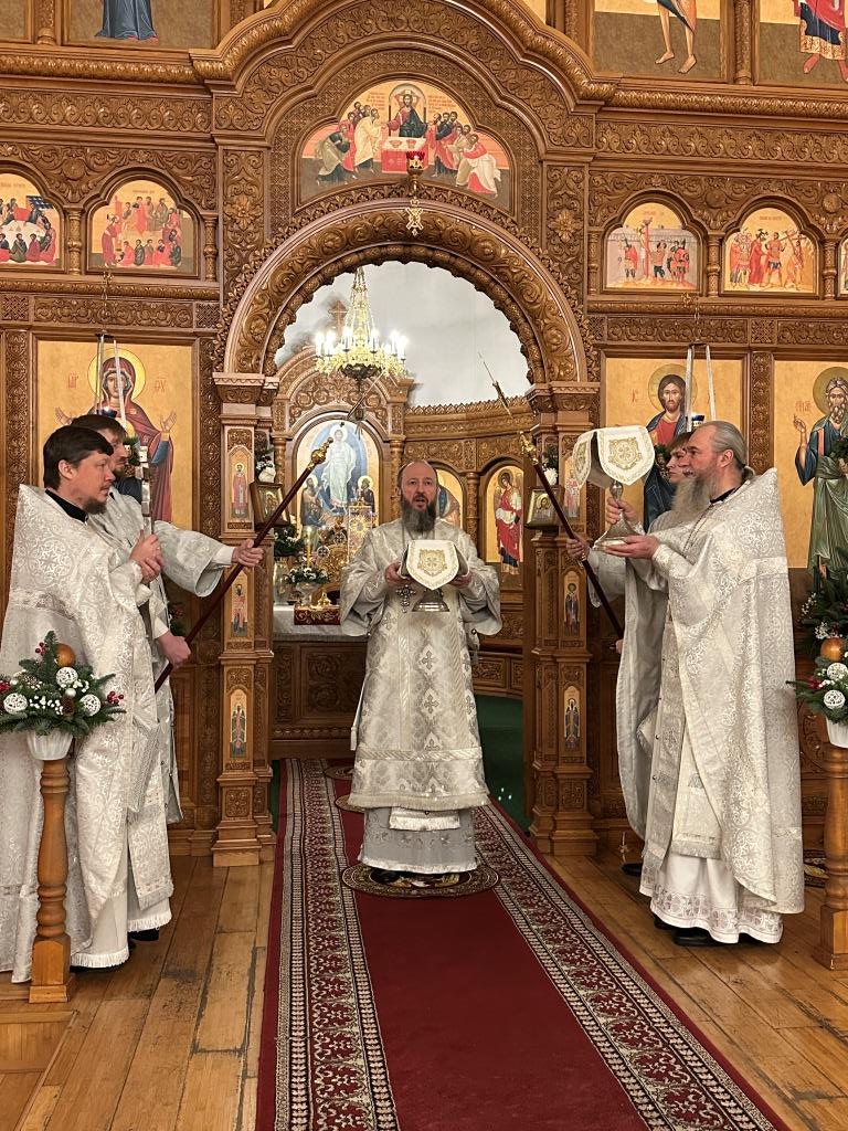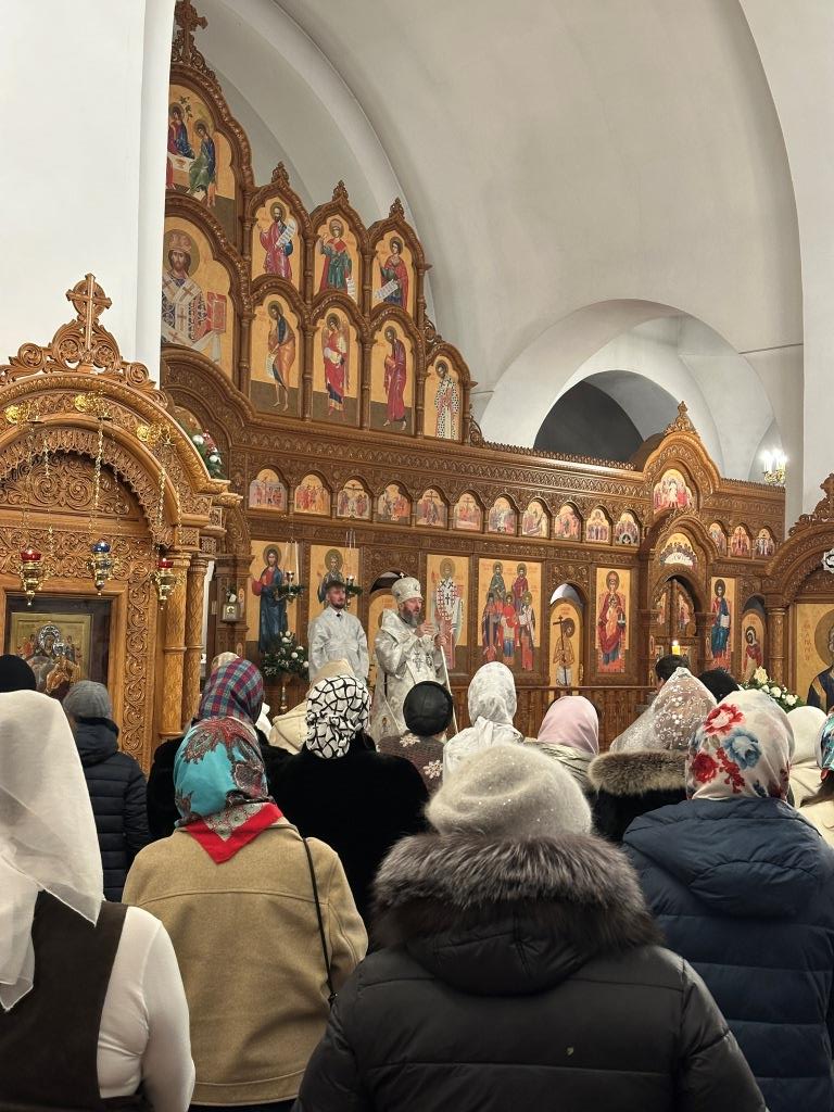 За праздничным богослужением молились сотрудники епархиального управления, насельники Свято-Троицкого мужского монастыря города Усть-Каменогорска, прихожане и паломники Андреевского кафедрального собора. Перед причастием мирян собравшимся было оглашено Рождественское Послание митрополита Астанайского и Казахстанского Александра.