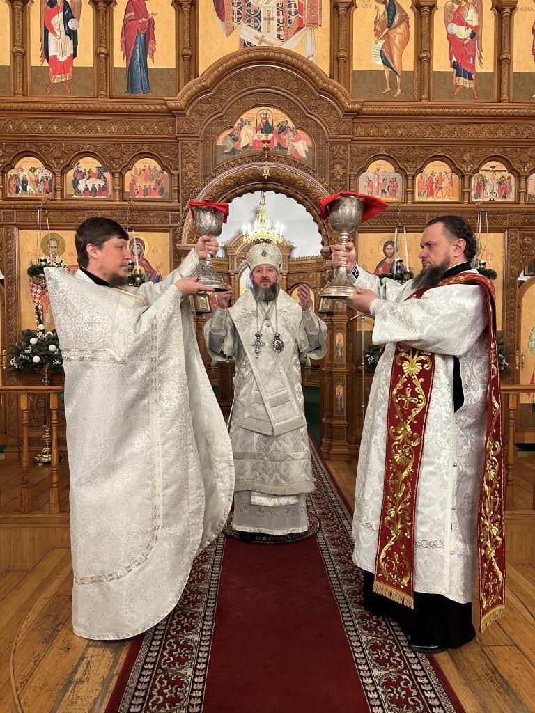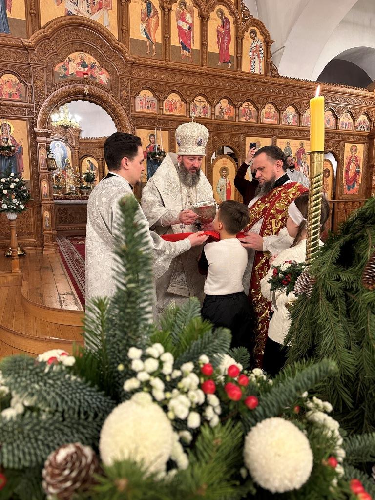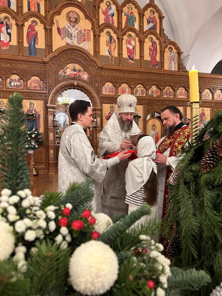 В рождественскую ночь в главном храме Восточного Казахстана, Андреевском кафедральном соборе города Усть-Каменогорска, Высокопреосвященнейший архиепископ Усть-Каменогорский и Семипалатинский Амфилохий возглавил служение Божественной Литургии святителя Иоанна Златоуста. Накануне в кафедральном соборе были совершены уставные богослужения Рождественского Сочельника и нáвечерия Рождества Христова. Перед началом ночной Божественной Литургии в соборе совершалась исповедь для желающих приобщиться Святых Христовых Таин в светлую рождественскую ночь.