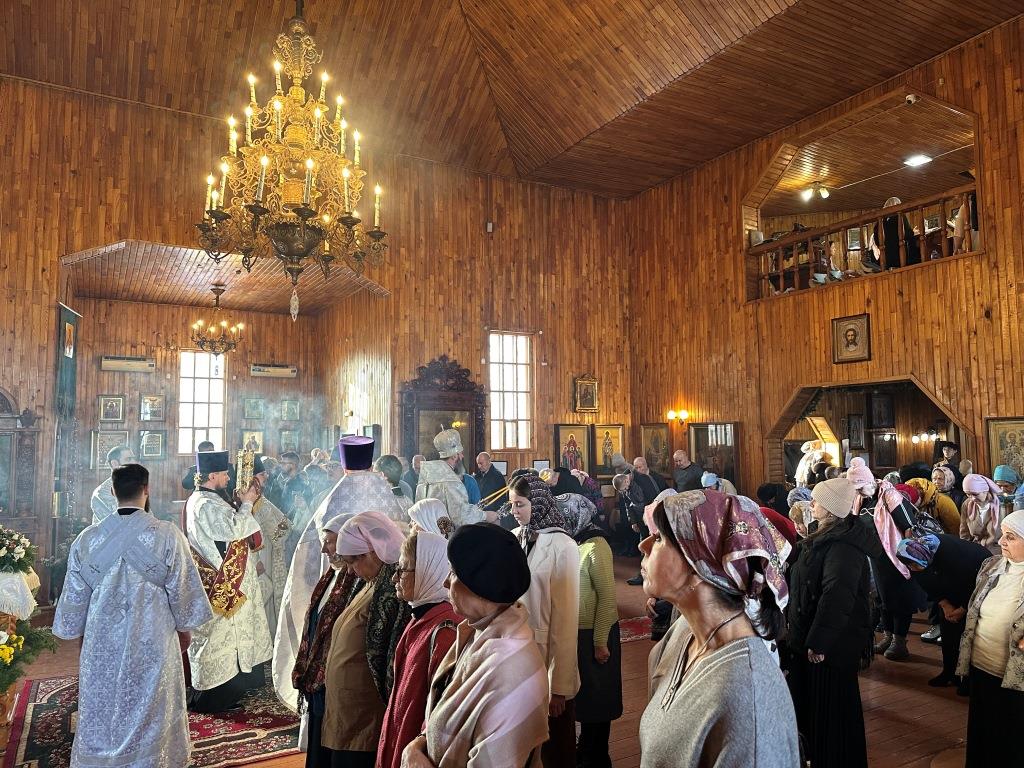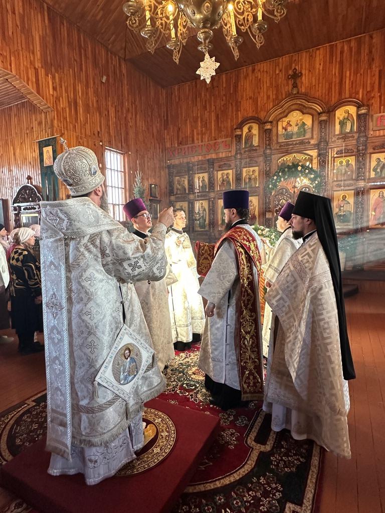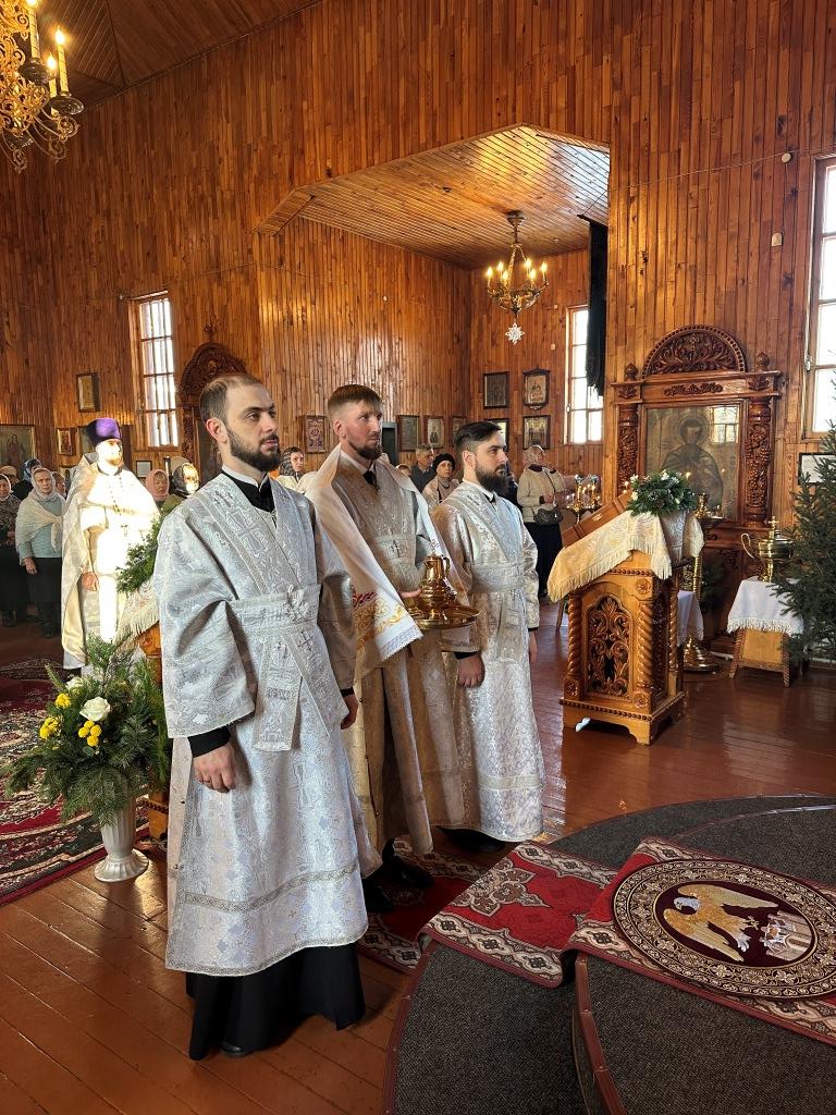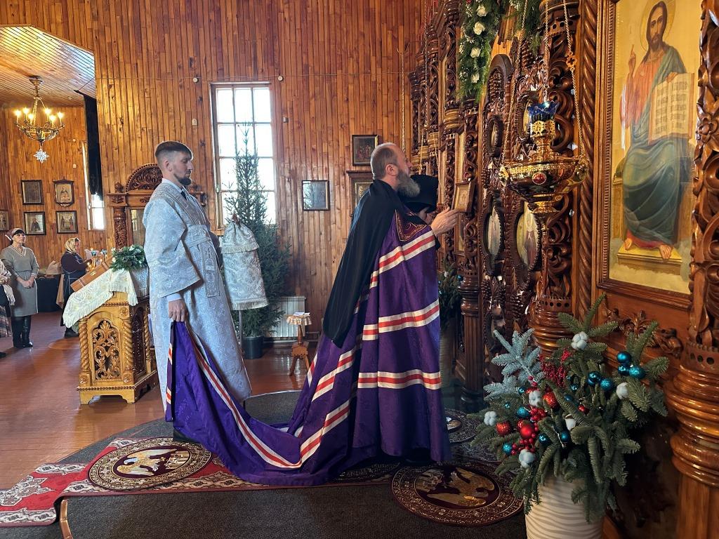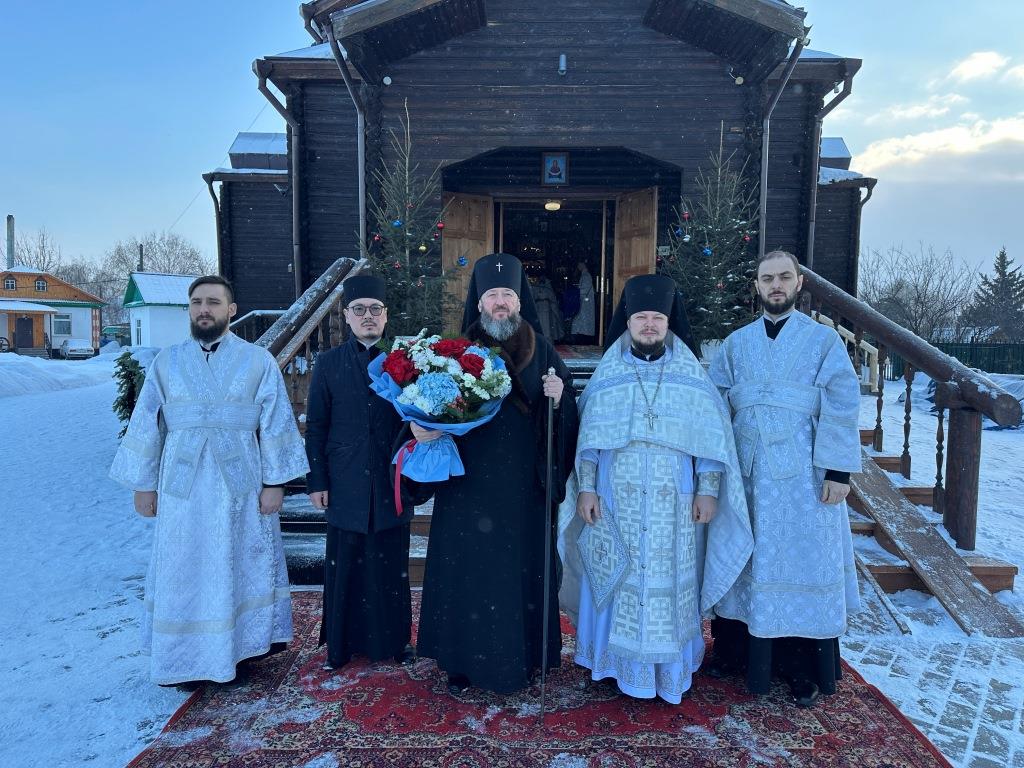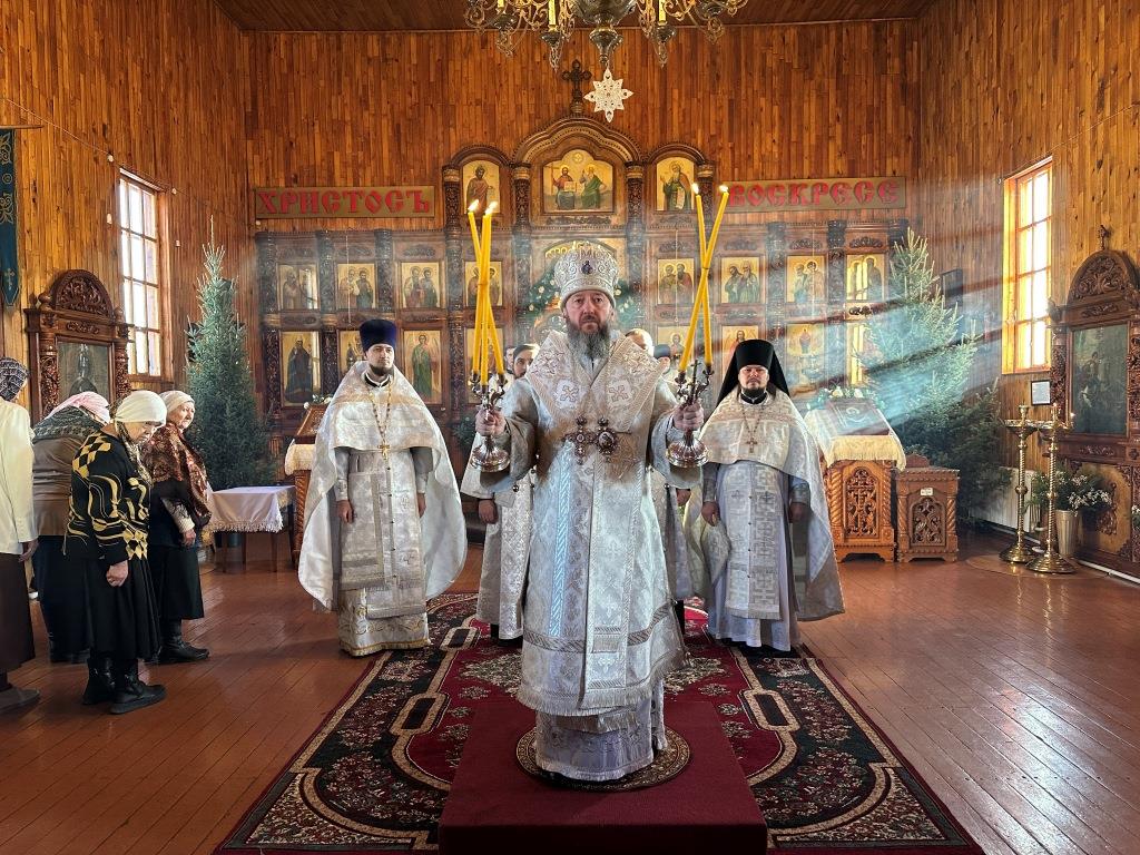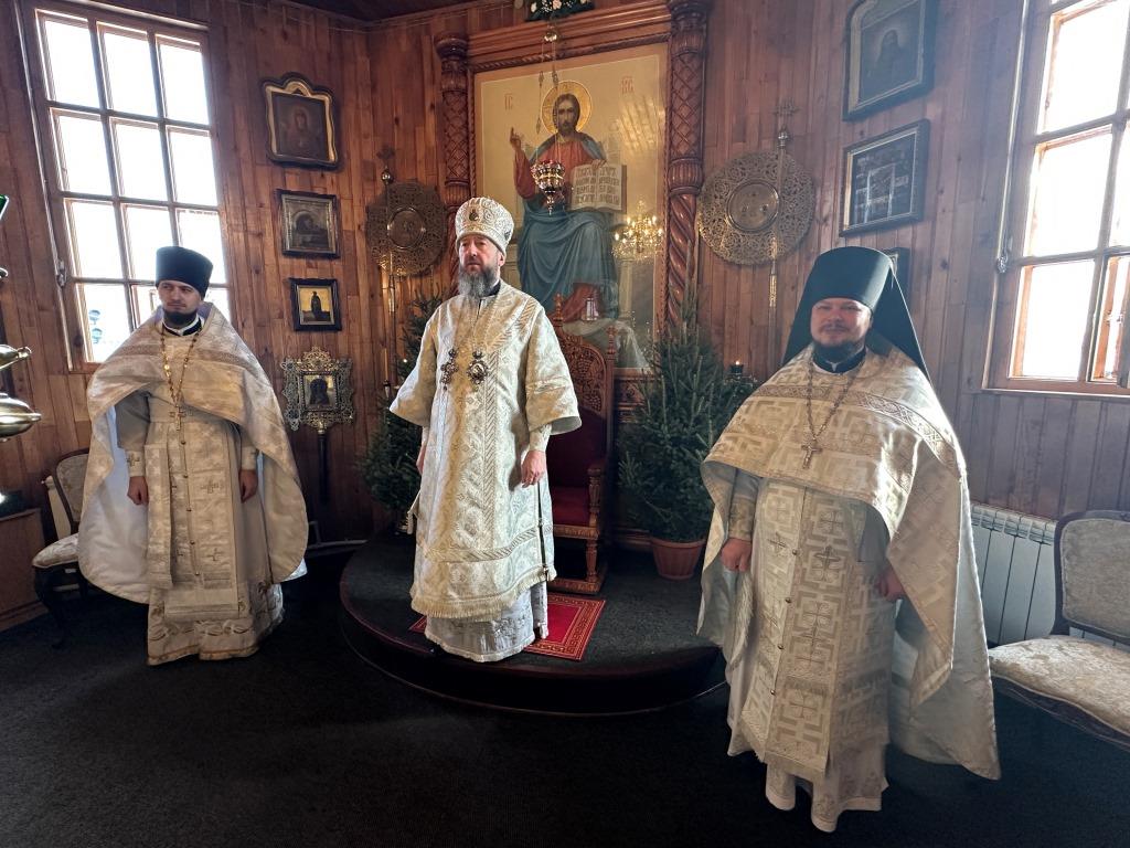 За архипастырским богослужением молились прихожане и паломники Покровского храма. Песнопения Рождества Христова и Божественной Литургии исполнял приходской хор под управлением регента А. Король. Перед причастием мирян было оглашено Рождественское послание Главы Православной Церкви Казахстана митрополита Астанайского и Казахстанского Александра.