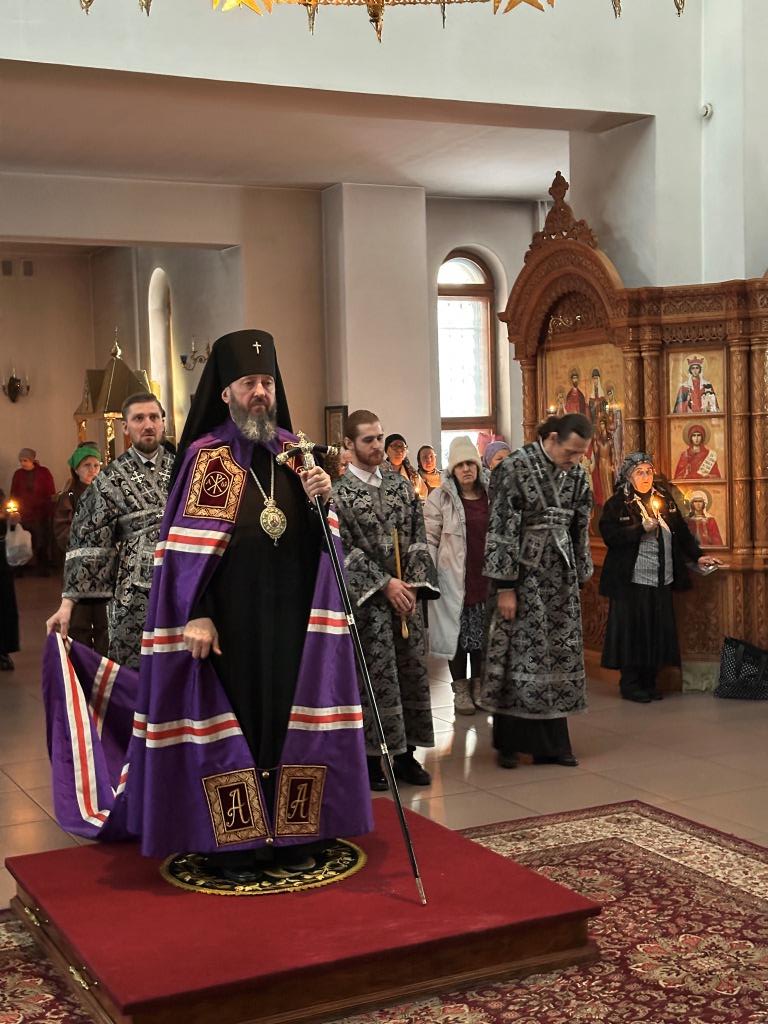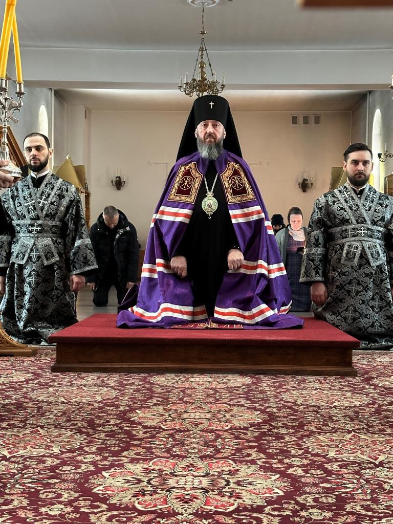 В среду первой седмицы Великого поста архиепископ Усть-Каменогорский и Семипалатинский Амфилохий возглавил служение Великого повечерия с чтением третьей части покаянного канона преподобного Андрея Критского.