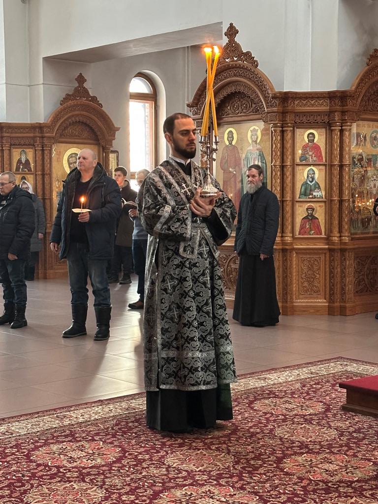 За богослужением молились клирики кафедрального собора, сотрудники епархиального управления, насельники Свято-Троицкого мужского монастыря города Усть-Каменогорска и прихожане Андреевского собора. Песнопения Великого повечерия и покаянного канона исполнял хор кафедрального собора под управлением регента Н. Романцовой.