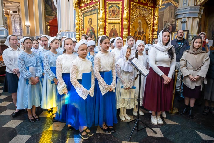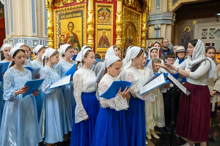 Песнопения исполняли: хор Митрополичьего округа под управлением Заслуженного деятеля искусств России О.Н. Овчинникова и сводный детский хор воскресных школ Южной столицы (художественный руководитель – Н. Головина, регент – О. Картаузова).