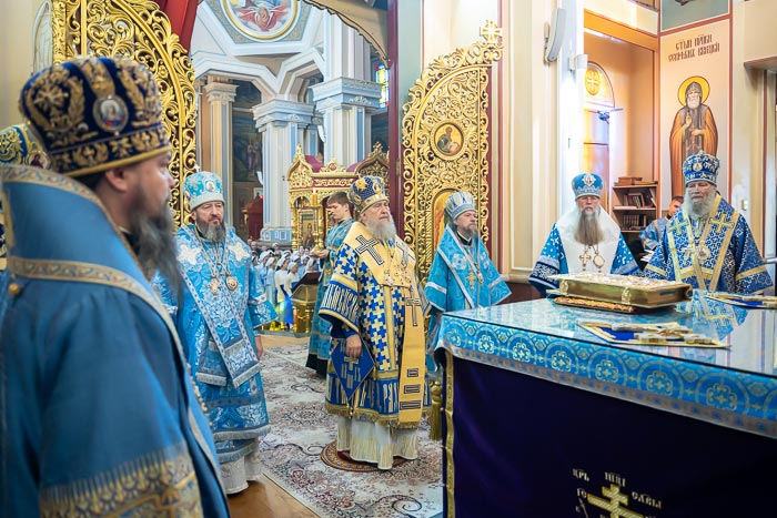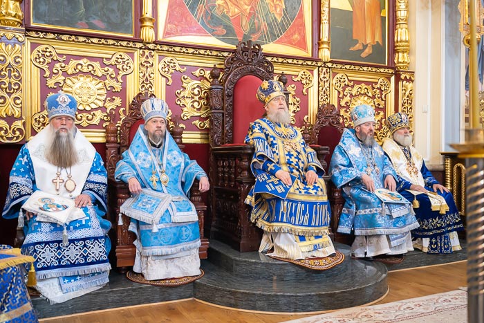 Его Высокопреосвященству сослужили: архиепископ Усть-Каменогорский и Семипалатинский Амфилохий; управляющий делами Православной Церкви Казахстана епископ Каскеленский Геннадий; епископ Актюбинский и Кызылординский Игнатий; викарий Астанайской епархии епископ Талдыкорганский Клавдиан; епископ Чимкентский и Туркестанский Хрисанф; викарий Астанайской епархии епископ Талгарский Вениамин; епископ Уральский и Атырауский Вианор.