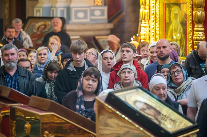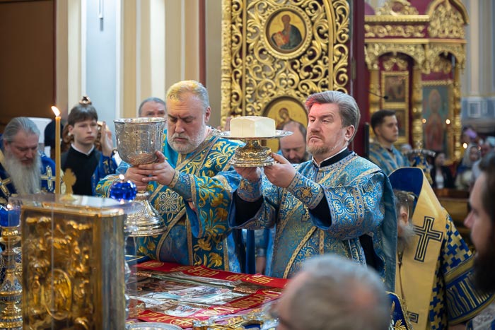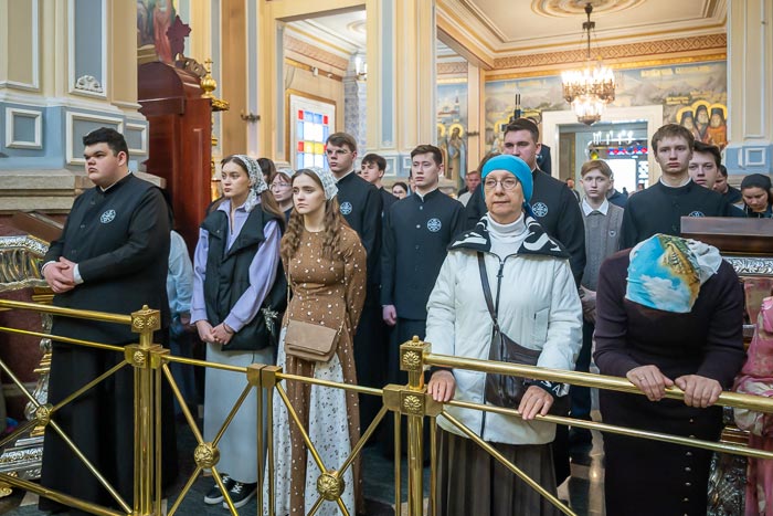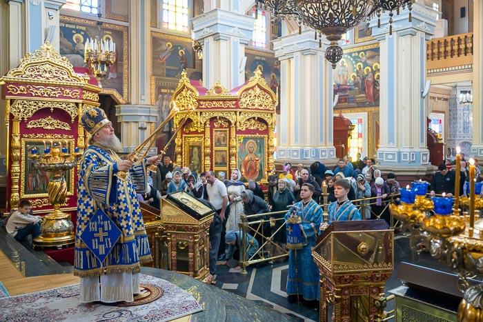 За Литургией молились: сотрудники Алма-Атинского епархиального управления, студенты Алма-Атинской духовной семинарии, учащиеся воскресной школы и прихожане кафедрального собора.