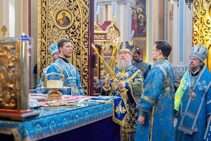 Предстоятель Православной Церкви Казахстана поздравил собравшихся со знаменательным событием – празднованием в честь Феодоровской иконы Божией Матери и произнес проповедь. Молящихся владыка окропил святой водой.