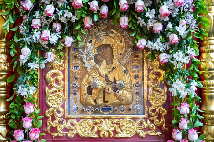 «С апостольских времен христианским миром почитаются иконы Божией Матери; по церковному преданию, первым Ее лик запечатлел святой евангелист Лука. Глубокой и искренней любовью к Царице Небесной отличались наши благочестивые предки, о чем свидетельствует множество образов Пресвятой Богородицы, прославленных чудотворениями в Православной Церкви. Среди них – великая святыня, Феодоровская икона Пресвятой Богородицы, многовековая судьба которой связана с выдающимися и славными событиями церковной жизни и Отечества. История Феодоровского образа Царицы Небесной, около восьми столетий пребывающего в Костроме, хранит память о многих чудесах, благодатном заступлении и материнской помощи Пресвятой Богородицы, явленных православным христианам. Эта великая святыня связана с известными подвижниками веры и благочестия, знаменитыми воеводами и царями. Прославленная многочисленными чудесами, Феодоровская икона Божией Матери почитается как покровительствующая семейному благополучию, рождению и воспитанию детей, помогающая в трудных родах. По молитвам перед этим образом совершаются исцеления от тяжелых болезней, в том числе и бесплодия, о чем есть реальные, документально подтвержденные свидетельства». Из проповеди митрополита Александра.