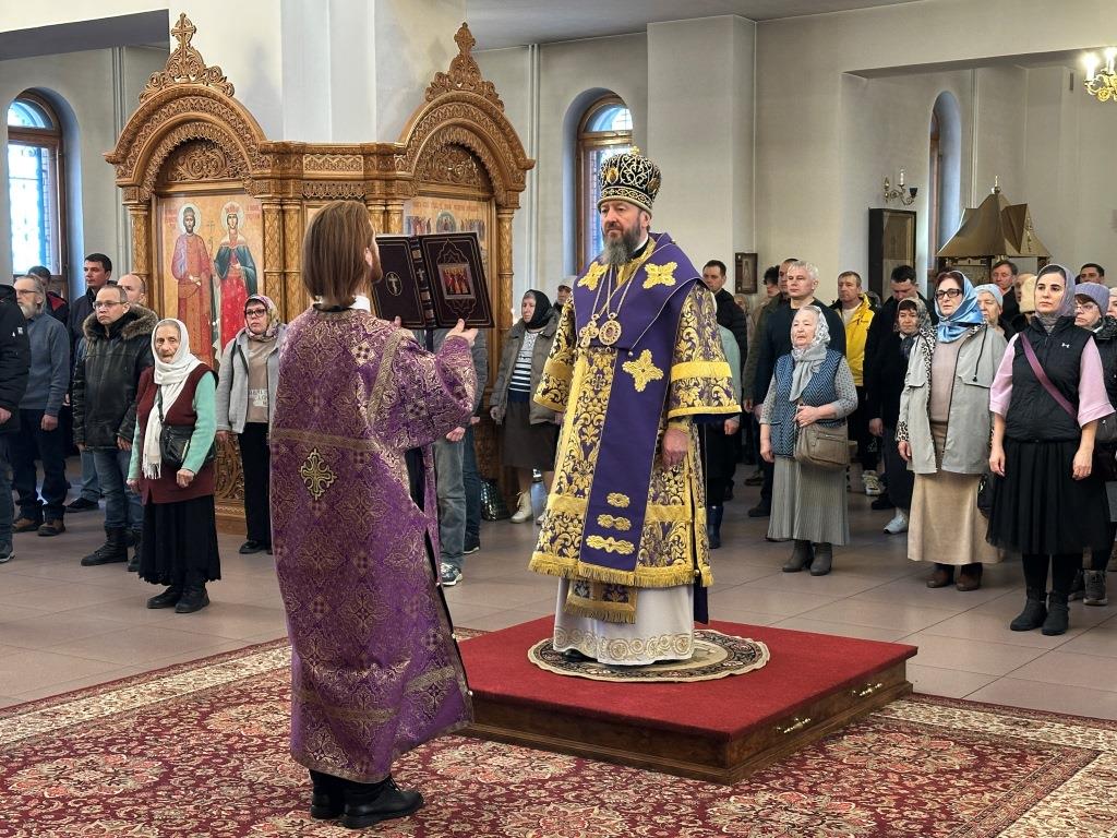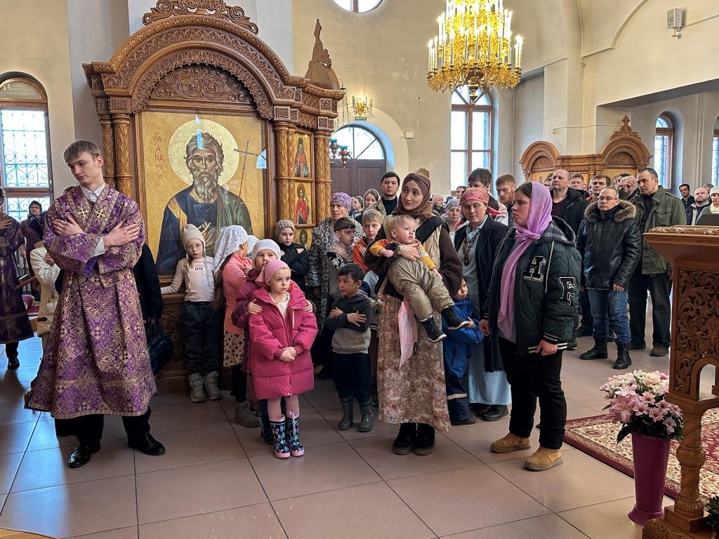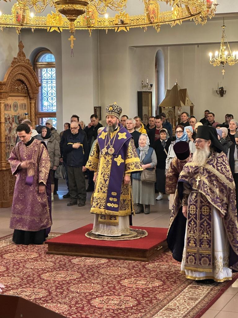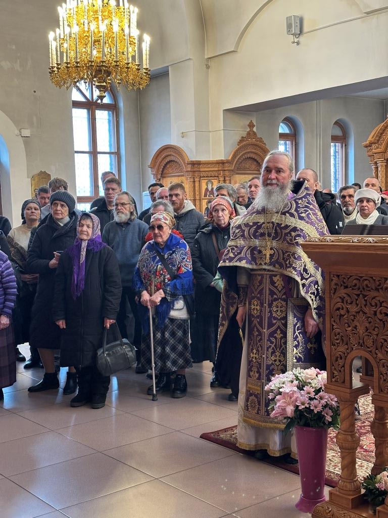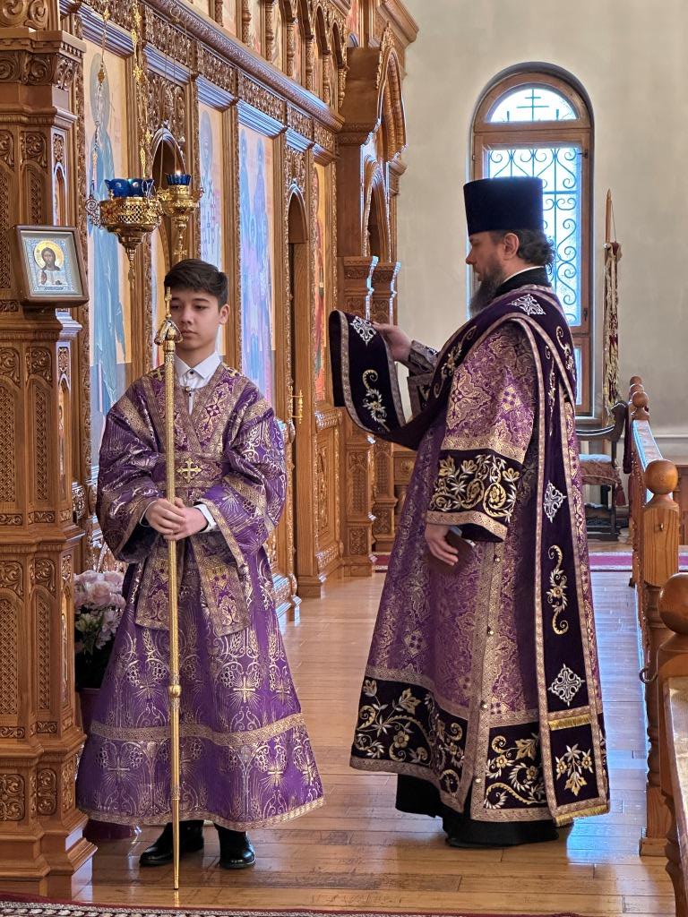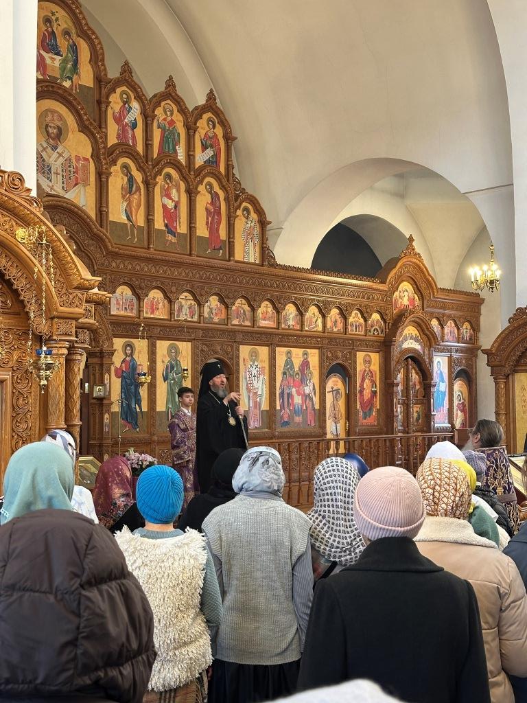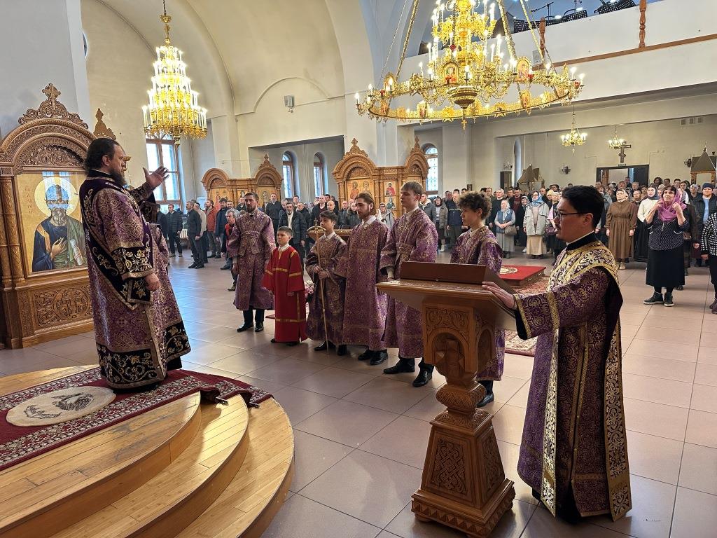 Песнопения Божественной Литургии исполнял хор Андреевского собора под управлением Н. Романцовой. За воскресным богослужением молились прихожане храма главного храма Восточного Казахстана, сотрудники епархиального управления, преподаватели и воспитанники Центральной воскресной, насельники Свято-Троицкого мужского монастыря города Усть-Каменогорска.