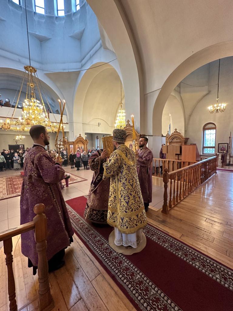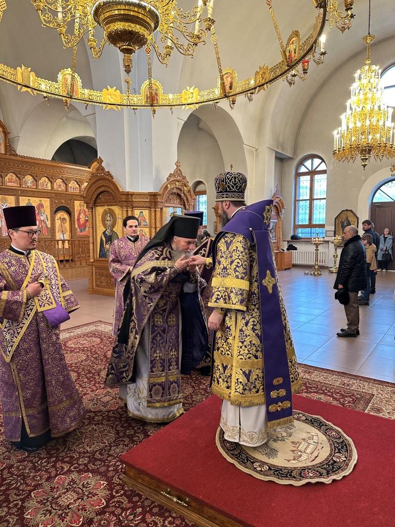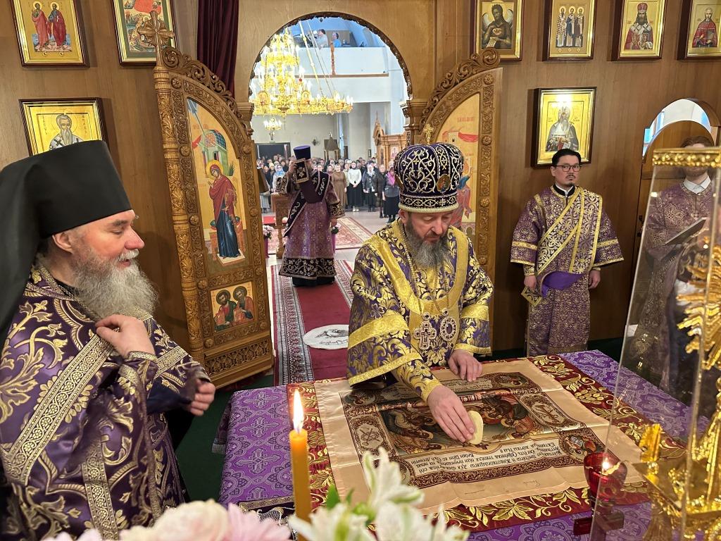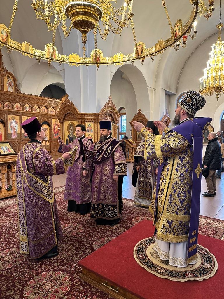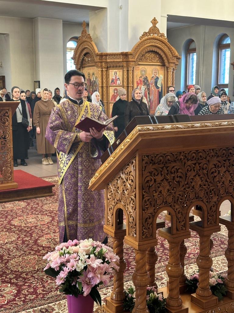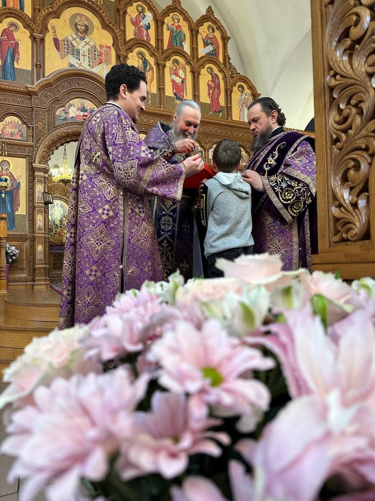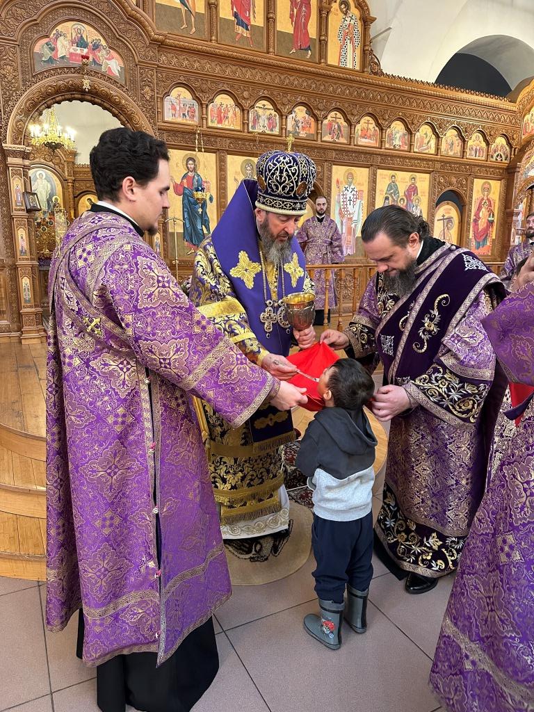 Песнопения Божественной Литургии исполнял хор Андреевского собора под управлением Н. Романцовой. За воскресным богослужением молились прихожане храма главного храма Восточного Казахстана, сотрудники епархиального управления, преподаватели и воспитанники Центральной воскресной, насельники Свято-Троицкого мужского монастыря города Усть-Каменогорска.
