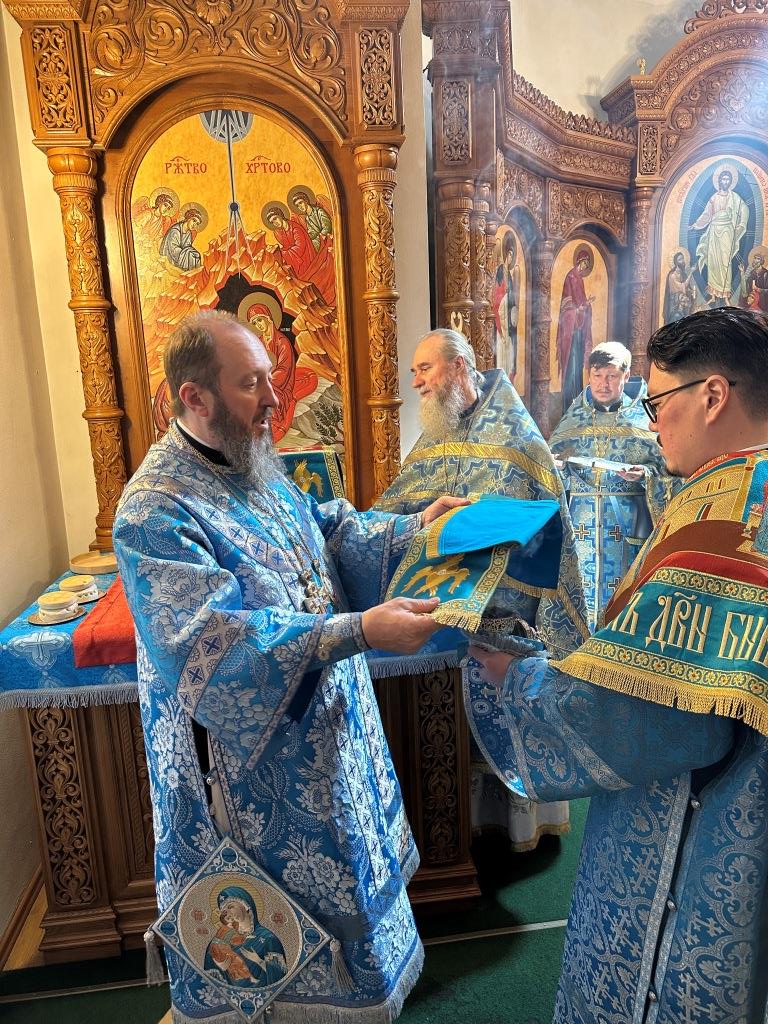 После окончания богослужения было совершено славление Пресвятой Богородице пред праздничной иконой. Затем архиепископ Амфилохий поздравил духовенство и молящихся с праздником и произнёс слова поучения.
