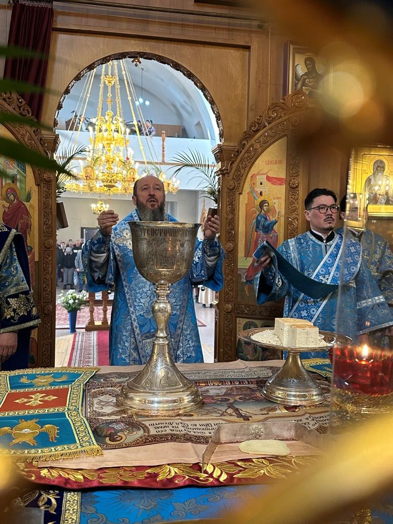 В день праздника Благовещения Пресвятой Богородицы Высокопреосвященнейший архиепископ Амфилохий возглавил служение великой вечерни в соединении с Божественной Литургией святителя Иоанна Златоуста в Андреевском кафедральном соборе города Усть-Каменогорска.