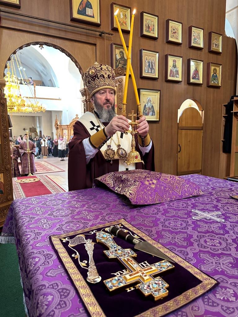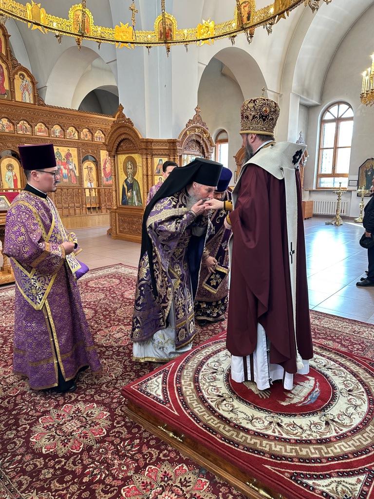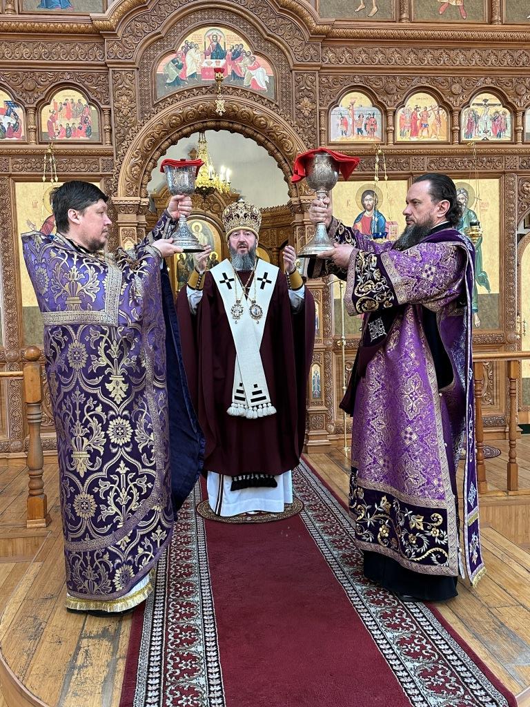 Архиепископ Усть-Каменогорский и Семипалатинский Амфилохий возглавил служение Божественной Литургии святителя Василия Великого в соединении с вечерней в кафедральном соборе в честь апостола Андрея Первозванного столицы Рудного Алтая. Владыке Амфилохию сослужили: ключарь кафедрального собора иеромонах Никодим (Авдеев), клирики собора иерей Роман Подрезов; протодиакон Андрей Дудник, секретарь епархии диакон Илия Кван, диакон Кирилл Рамазанов.