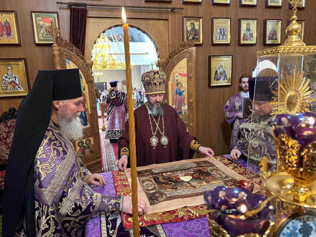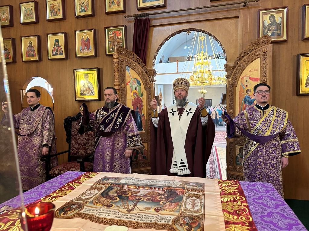 Песнопения Божественной Литургии исполнял хор Андреевского собора под управлением Н. Романцовой. За богослужением молились насельники Свято-Троицкого мужского монастыря, сотрудники Усть-Каменогорского епархиального управления, многочисленные прихожане и паломники. По благочестивой традиции в этот день большинство прихожан кафедрального собора приобщились святых Христовых Таин.