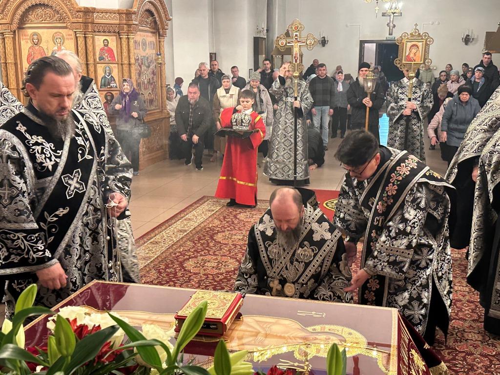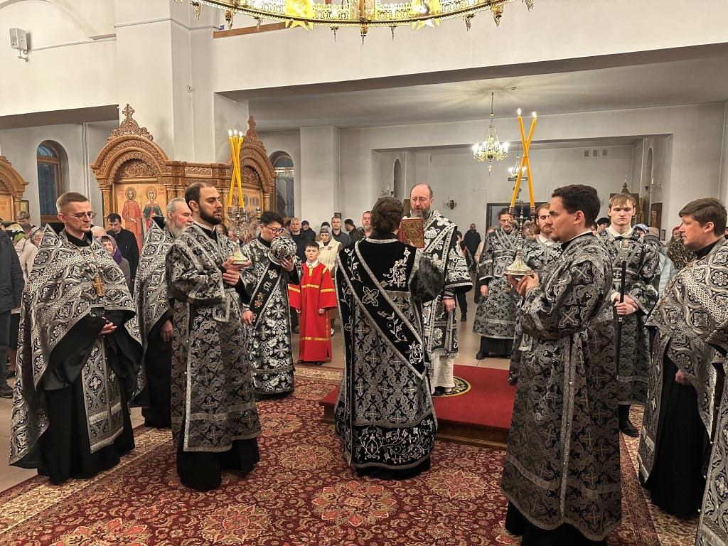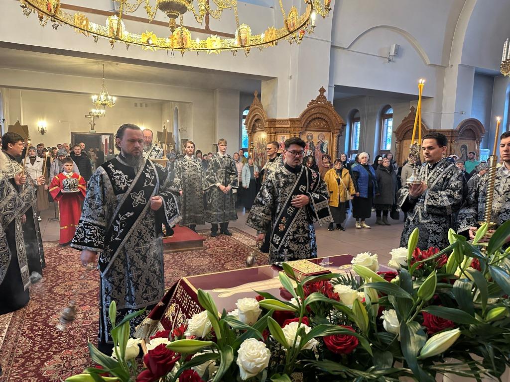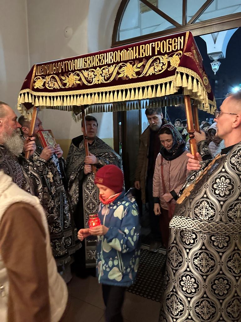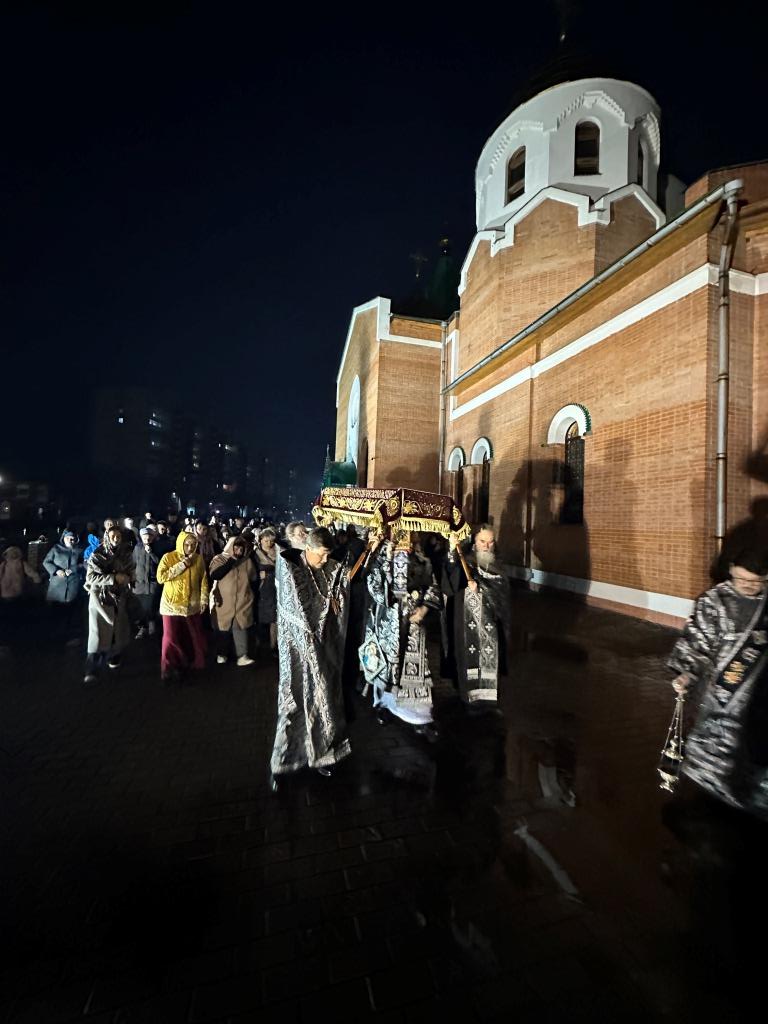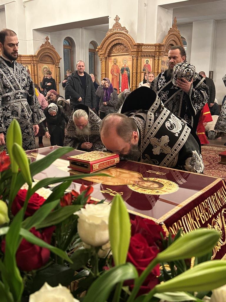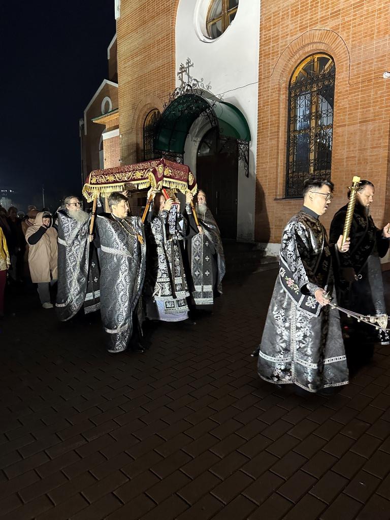 Песнопения Великой Пятницы исполнял хор под управлением регента Н. Романцовой. После пения тропарей на «Бог Господь» владыка Амфилохий прочитал перед Плащаницей Спасителя стихи 17-й кафизмы, перемежающиеся краткими песнопениями о погребении Господа Иисуса Христа. По окончании великого славословия с пением погребального песнопения «Святый Боже» Плащаница была обнесена вокруг храма крестным ходом.