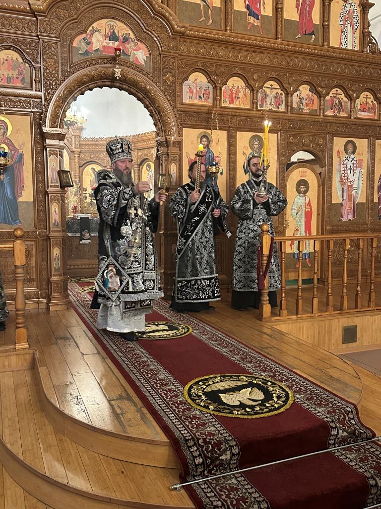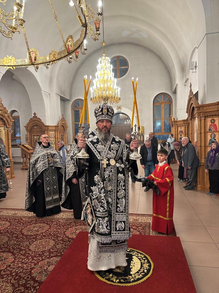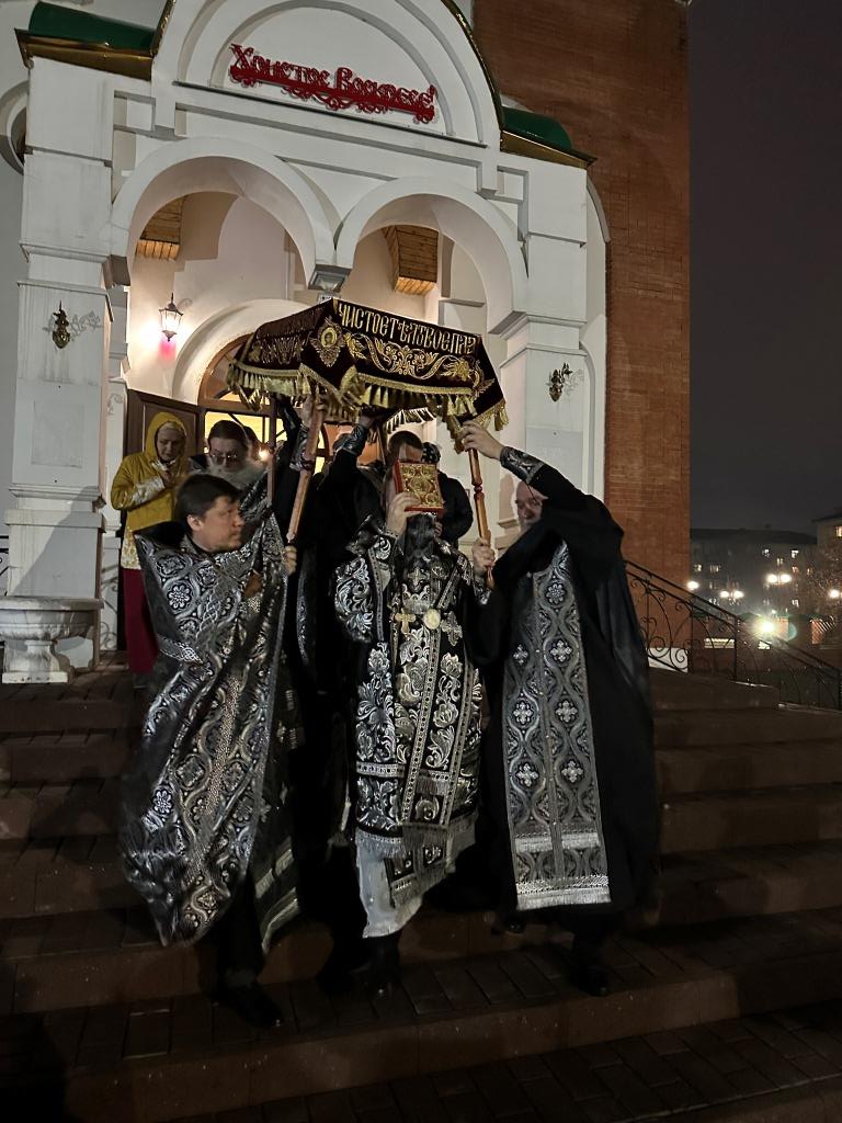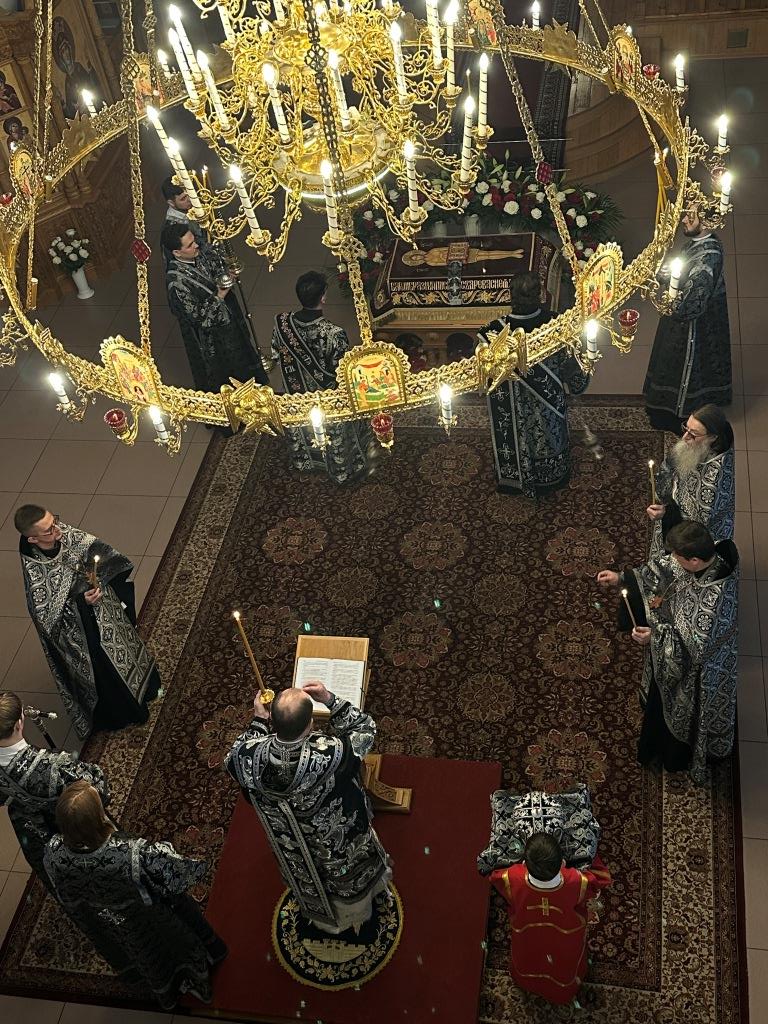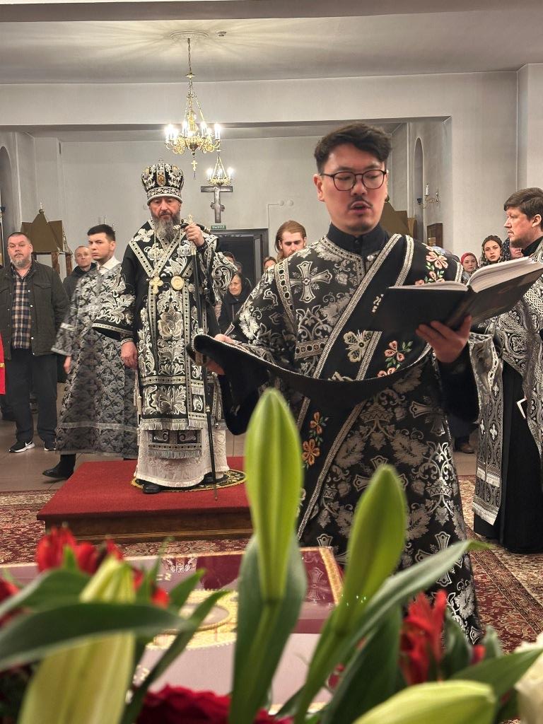 Высокопреосвященнейший архиепископ Усть-Каменогорский и Семипалатинский Амфилохий совершил утреню с чином погребения Плащаницы Господа нашего Иисуса Христа в Андреевском кафедральном соборе столицы Рудного Алтая. Архипастырю сослужили: ключарь кафедрального собора иеромонах Никодим (Авдеев); клирики кафедрального собора: иерей Роман Подрезов, иерей Константин Дьяков, иеромонах Рафаил (Юстус); протодиакон Андрей Дудник, секретарь епархии диакон Илия Кван, диакон Кирилл Рамазанов.
