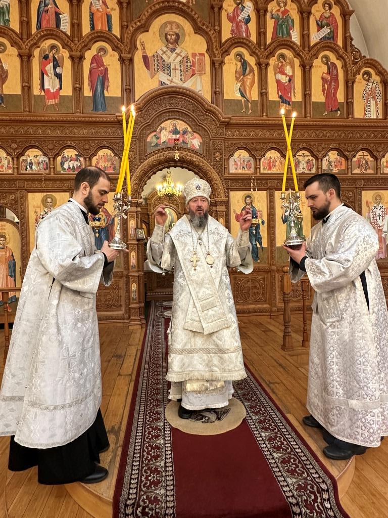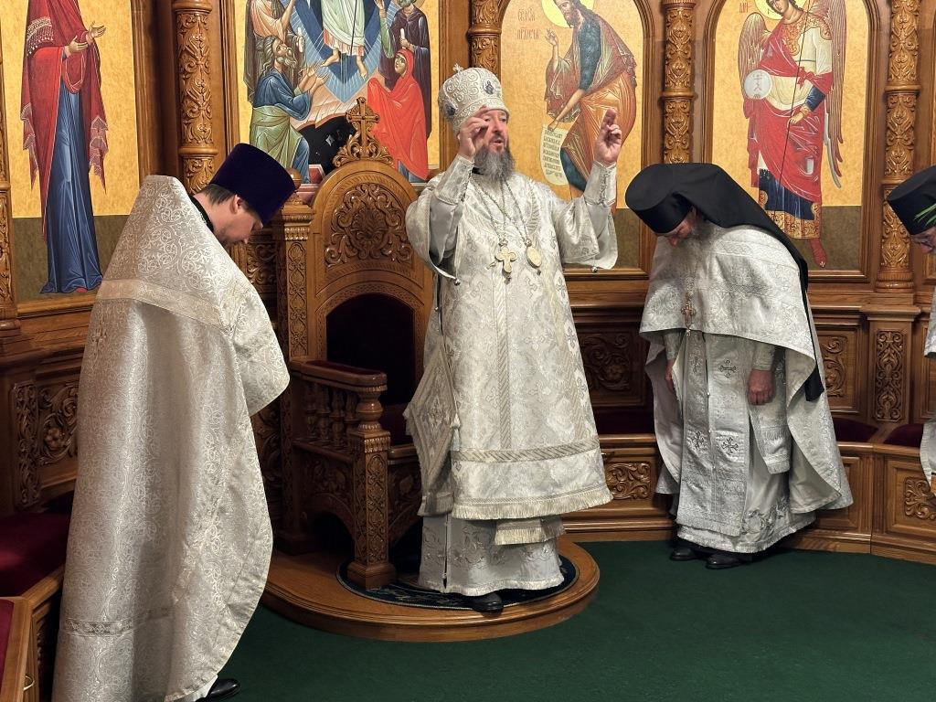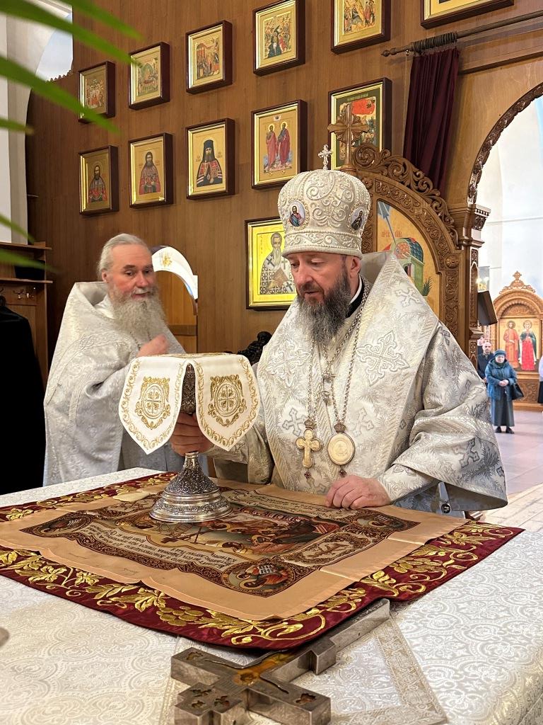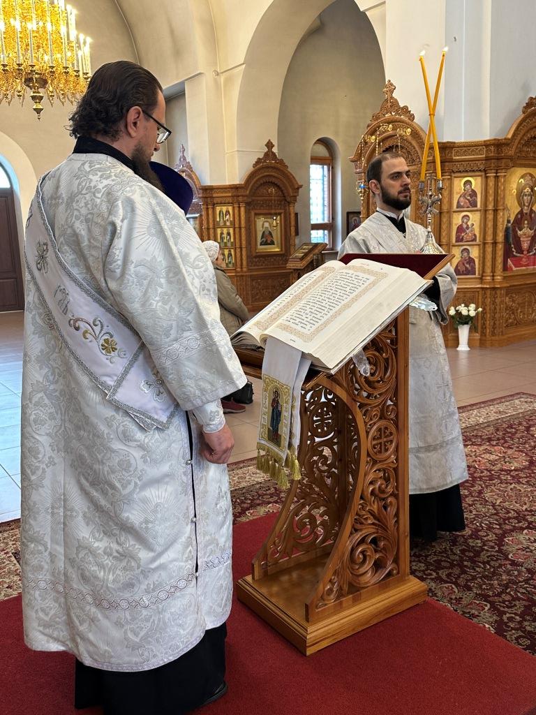 За богослужением были прочитаны паремии, в которых заключаются прообразы страданий, смерти и воскресения Христа и пророчества о наступлении благодатного Царства Господа и славы Новозаветной Церкви. По традиции, после чтения апостольского зачала, Архипастырь и клирики переоблачились, сменив темные великопостные ризы на праздничные белые.