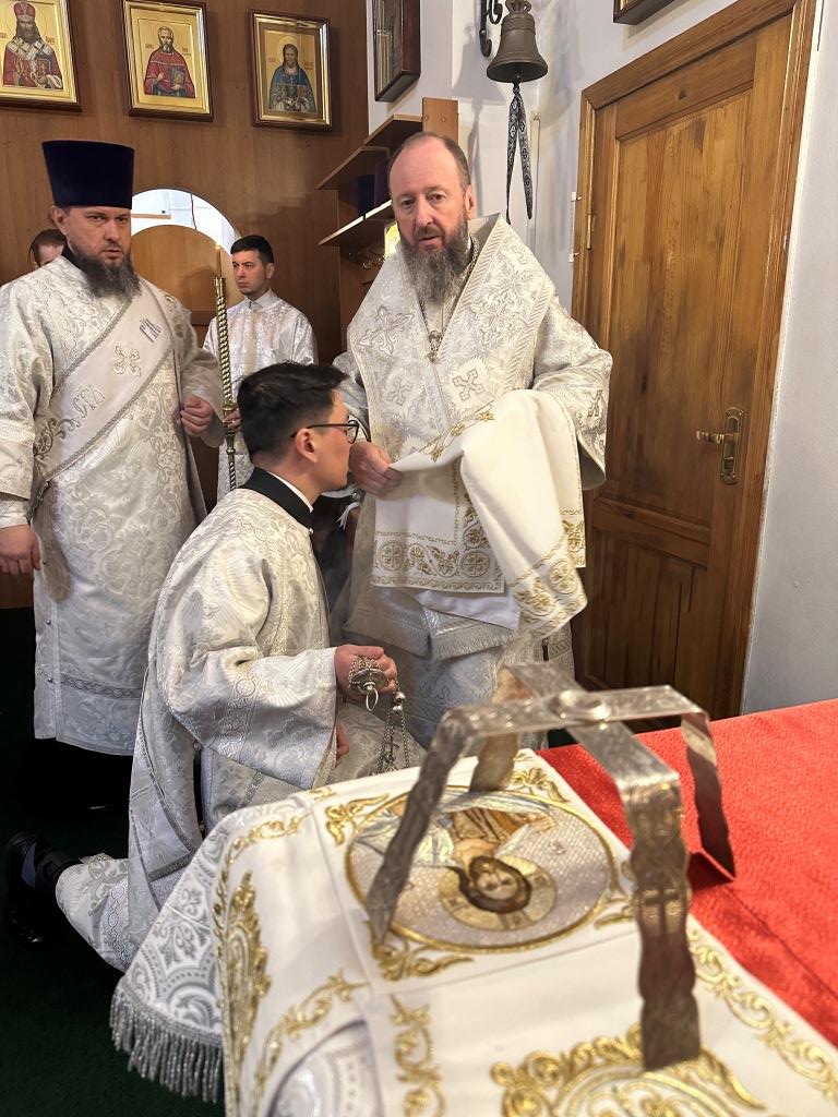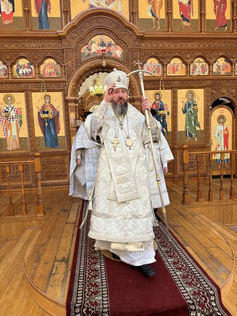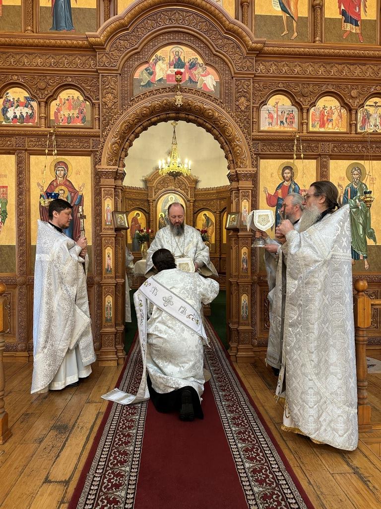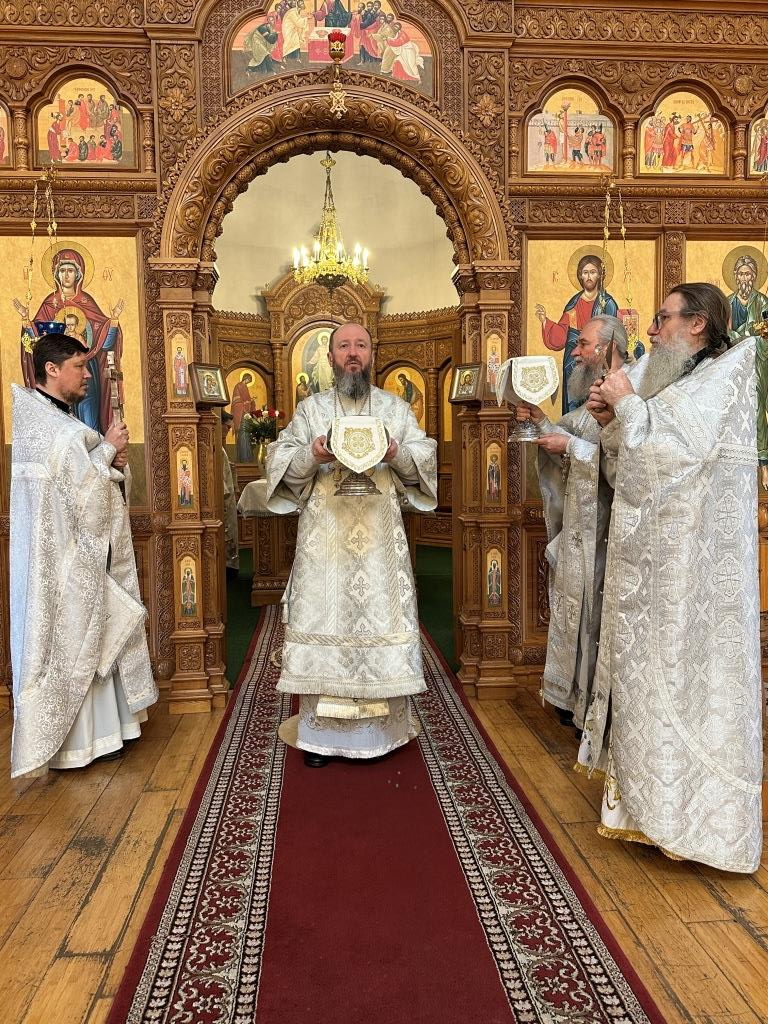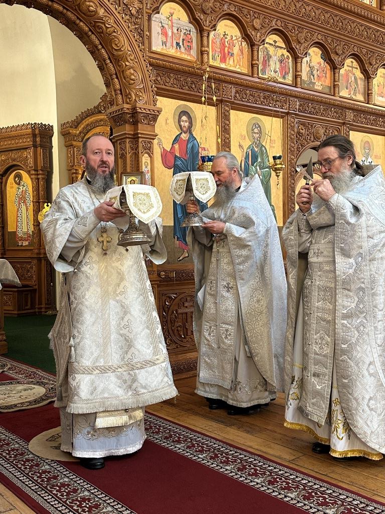 За богослужением были прочитаны паремии, в которых заключаются прообразы страданий, смерти и воскресения Христа и пророчества о наступлении благодатного Царства Господа и славы Новозаветной Церкви. По традиции, после чтения апостольского зачала, Архипастырь и клирики переоблачились, сменив темные великопостные ризы на праздничные белые.
