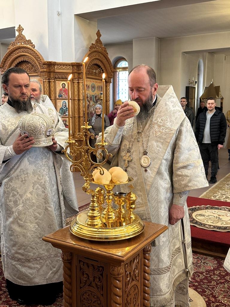 После Божественной Литургии была совершена лития с освящением хлеба и вина в память о том, как древние христиане, оставаясь в храме после Литургии до Пасхальной утрени, вкушением освященных хлеба и вина подкрепляли себя на подвиг бдения в грядущую пасхальную ночь.