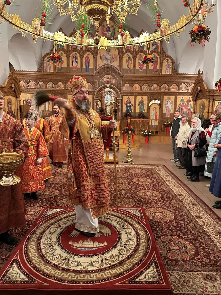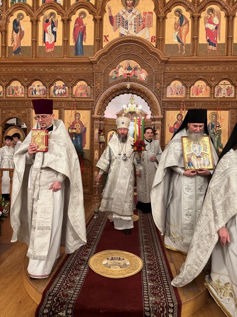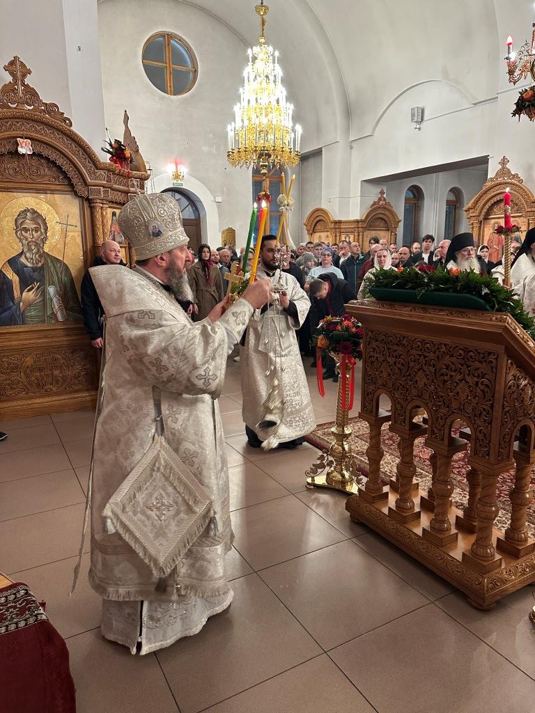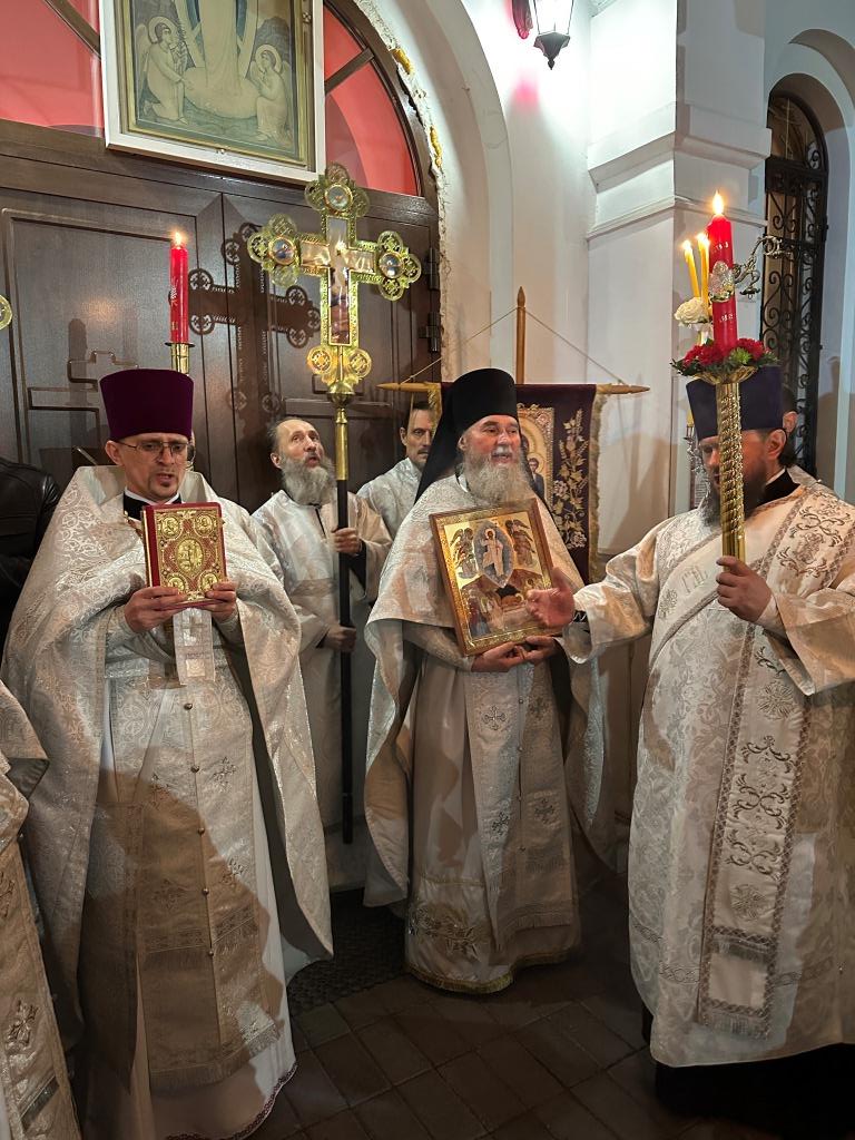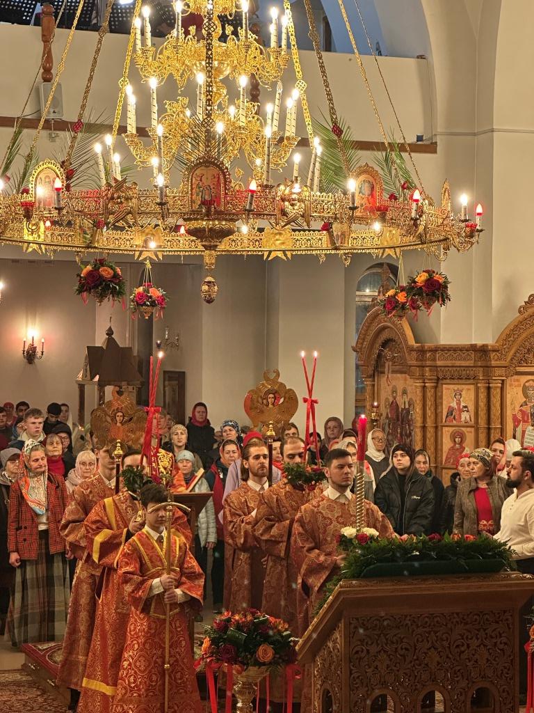 Перед началом Пасхального богослужения была совершена полунощница с каноном Великой Субботы, в котором повествуется о погребении Распятого на Кресте Сына Божия. На девятой песне канона Святая Плащаница была внесена в алтарь и положена на Престол, где она будет пребывать до праздника Вознесения.