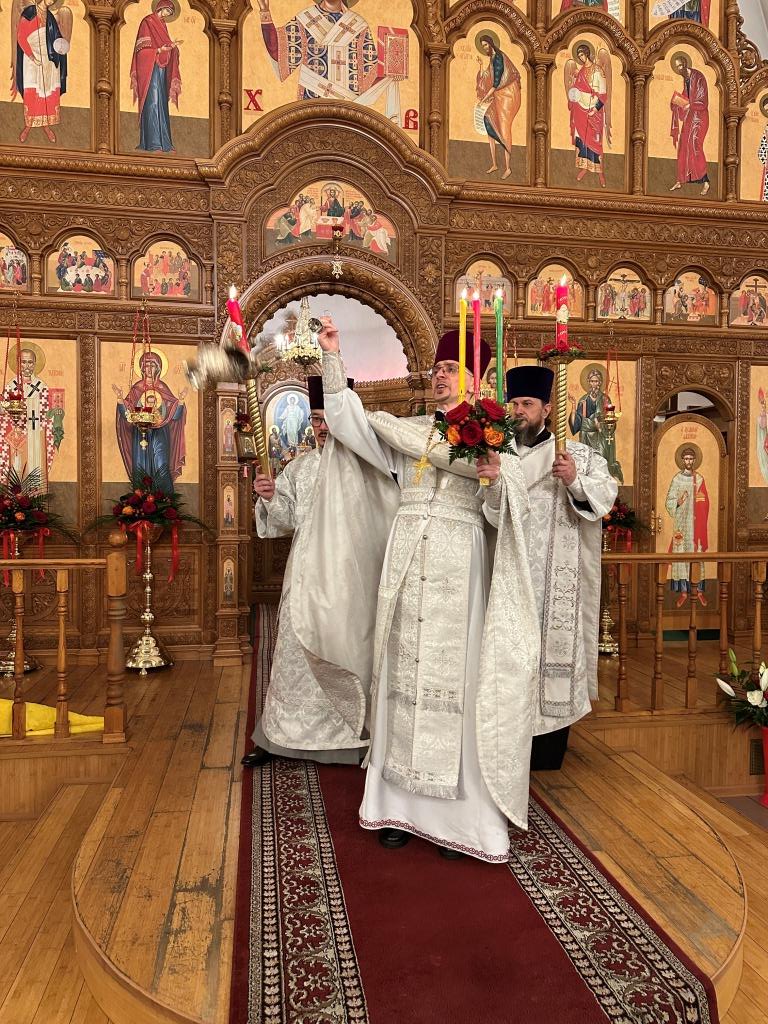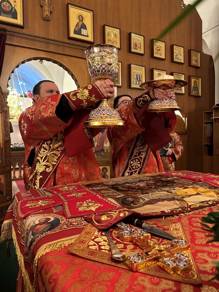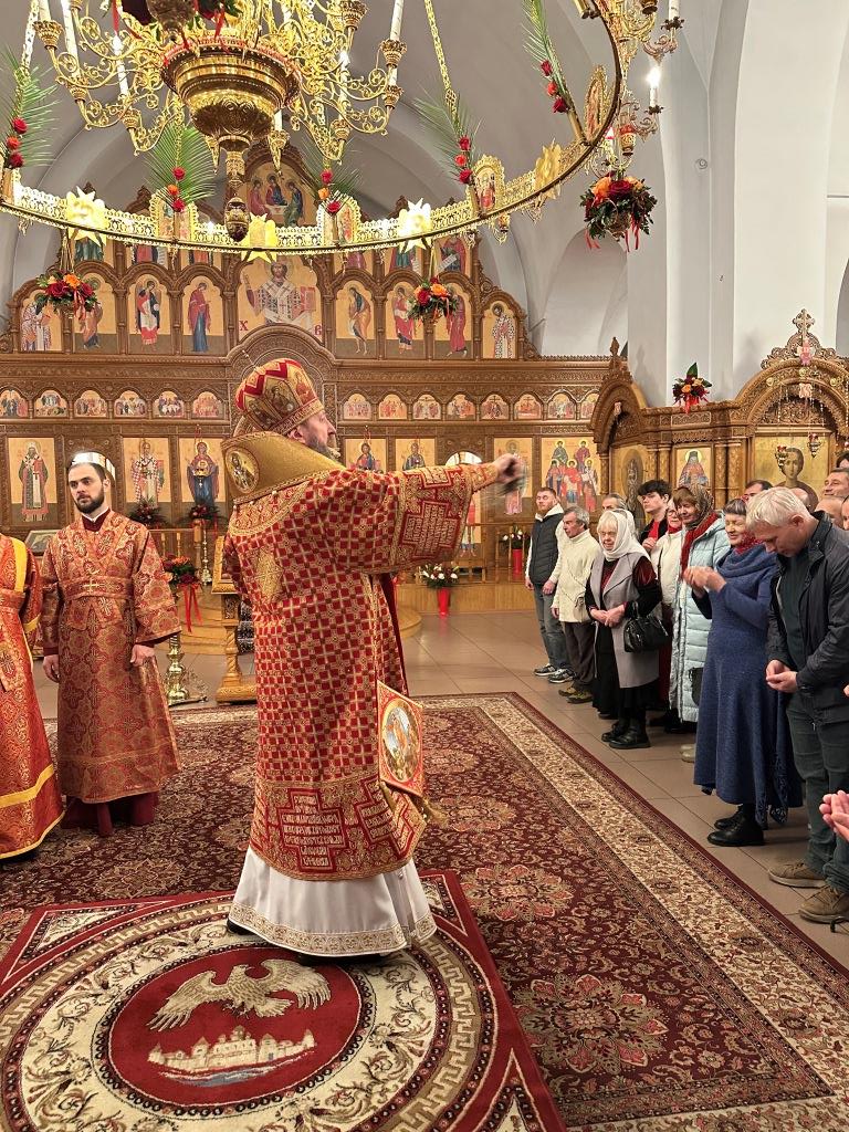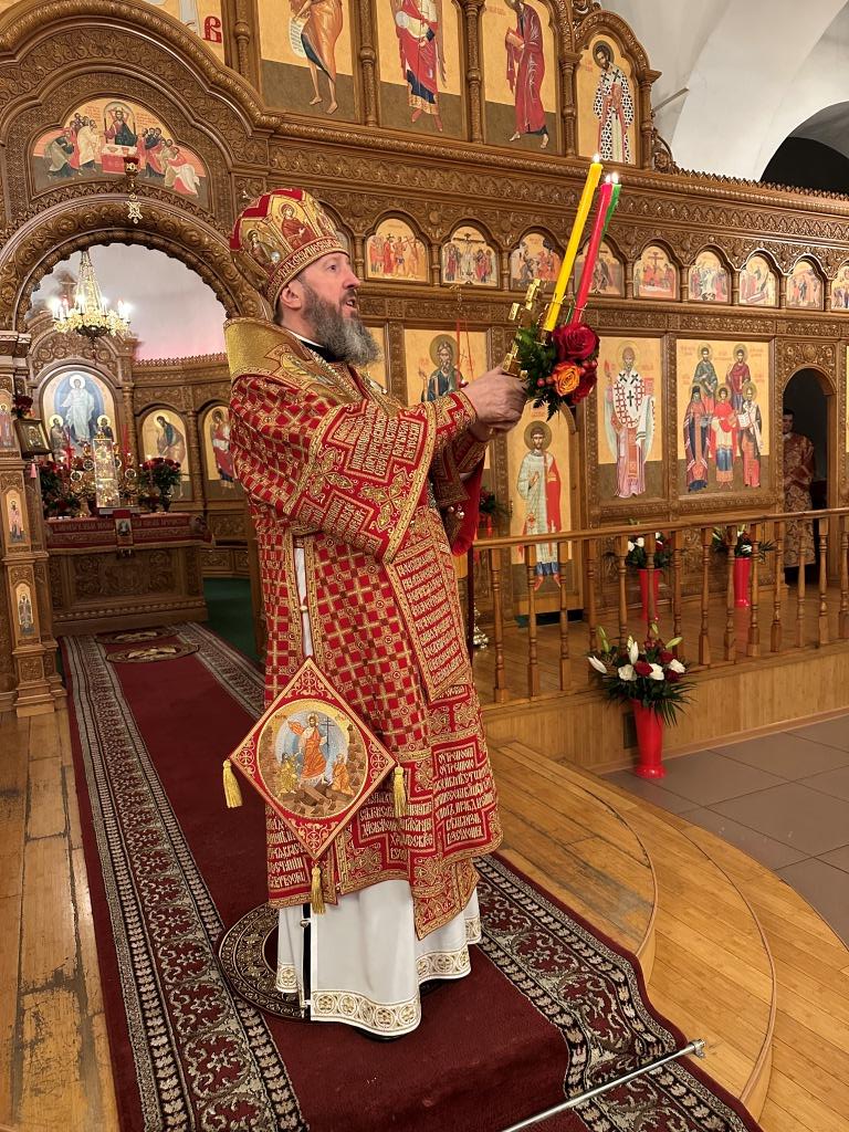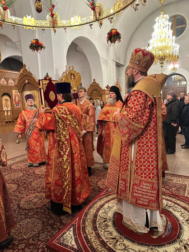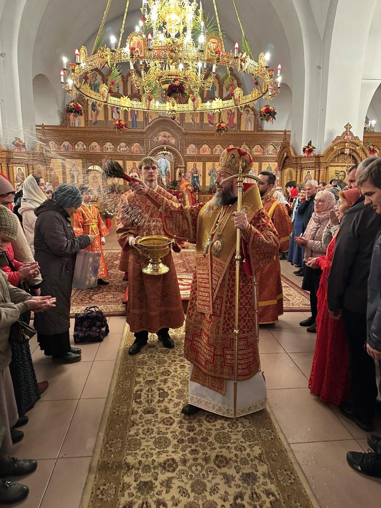 Перед началом Пасхального богослужения была совершена полунощница с каноном Великой Субботы, в котором повествуется о погребении Распятого на Кресте Сына Божия. На девятой песне канона Святая Плащаница была внесена в алтарь и положена на Престол, где она будет пребывать до праздника Вознесения.