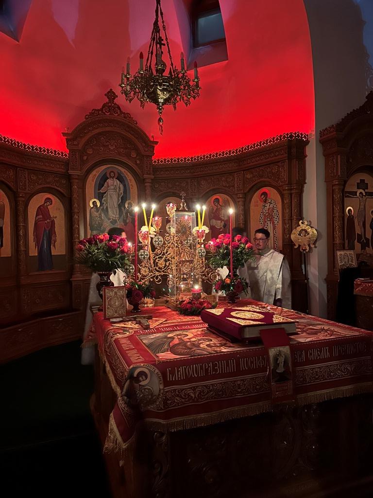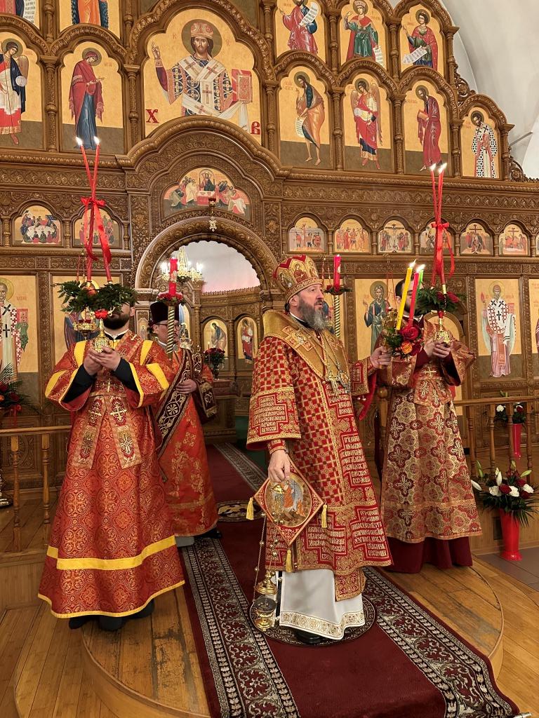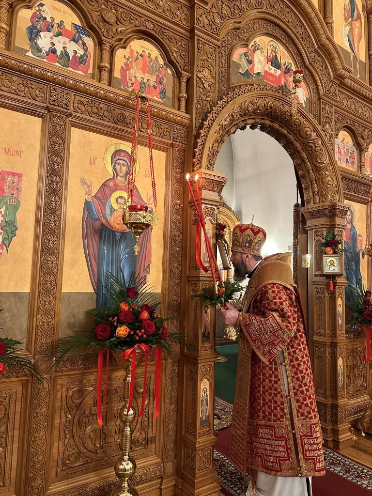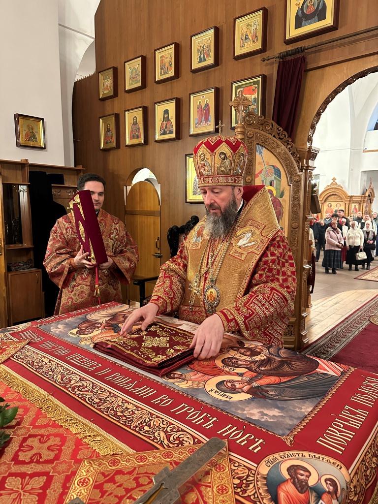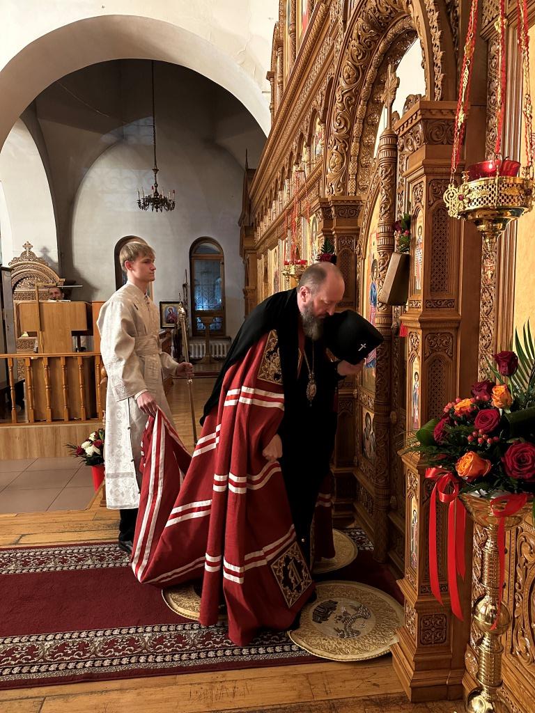 Перед началом Пасхального богослужения была совершена полунощница с каноном Великой Субботы, в котором повествуется о погребении Распятого на Кресте Сына Божия. На девятой песне канона Святая Плащаница была внесена в алтарь и положена на Престол, где она будет пребывать до праздника Вознесения.