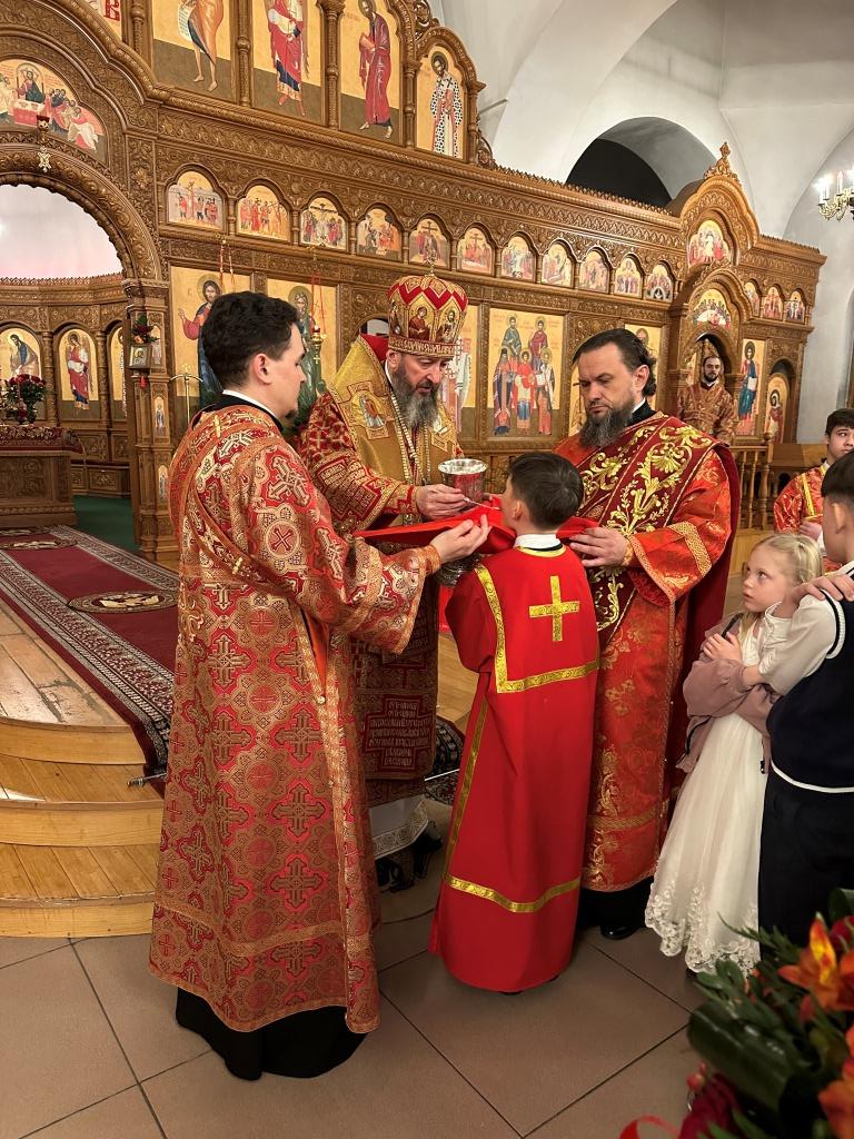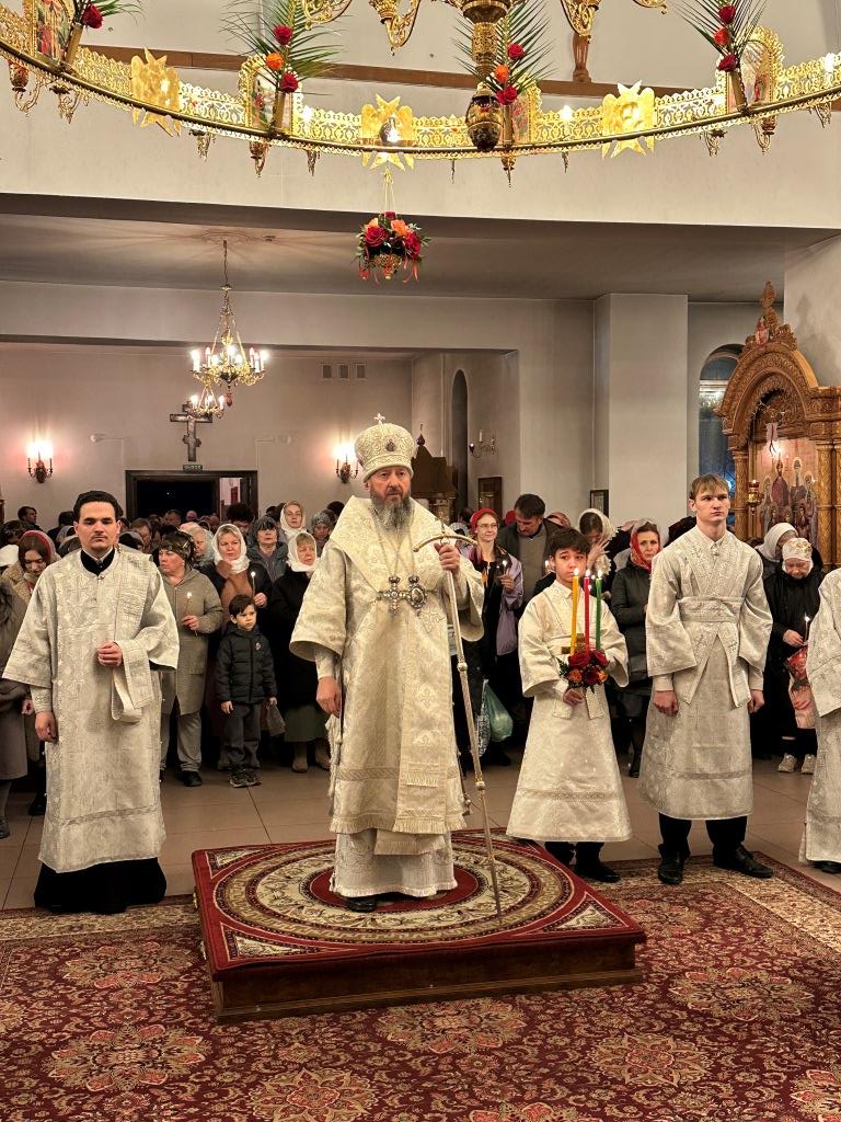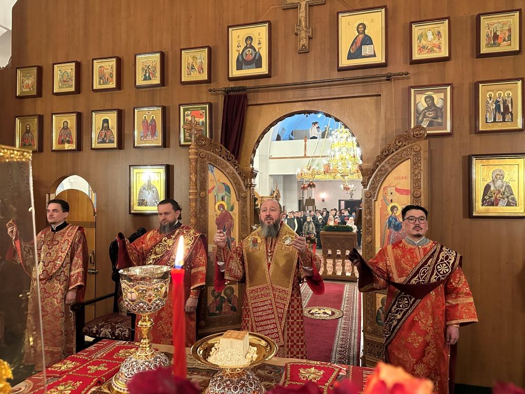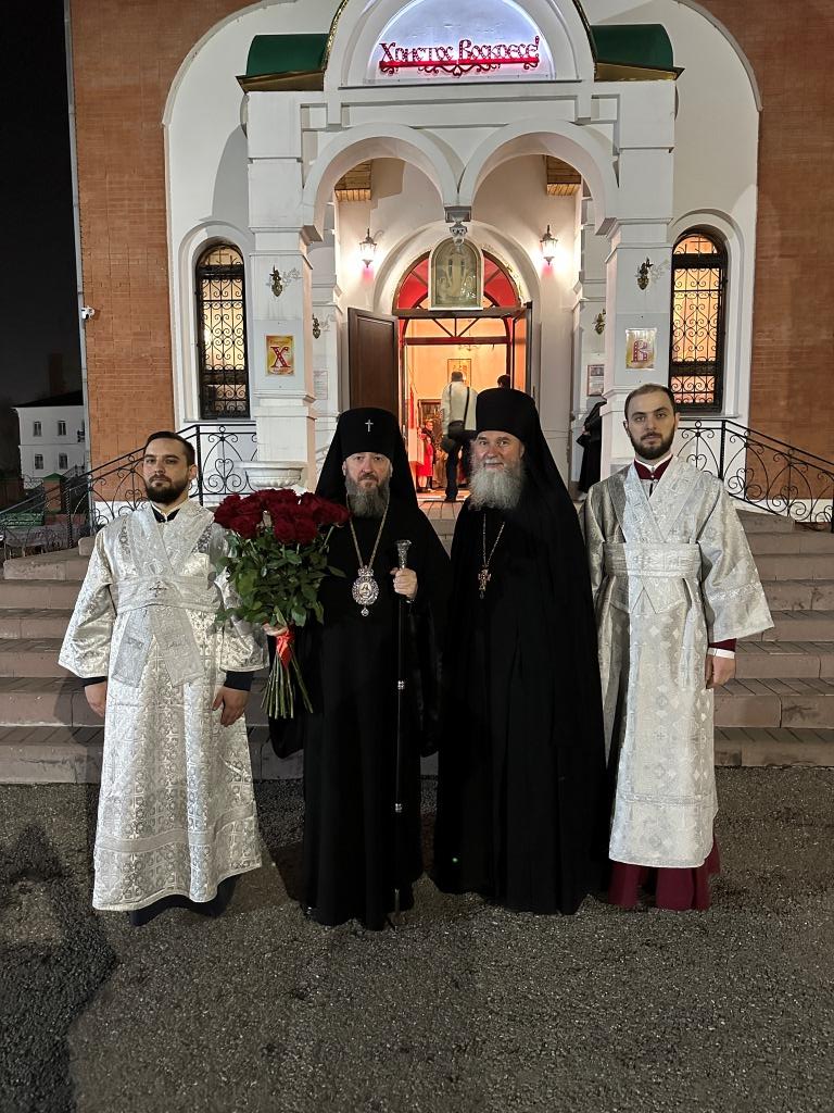 После пения канона и стихир Пасхи священник Константин Дьяков прочитал Слово огласительное святителя Иоанна Златоуста, в котором все христиане призываются в святую пасхальную ночь насладиться светлым торжеством и войти в радость тридневно Воскресшего Господа. Утреня завершилась пением пасхальных часов, после которых началась праздничная Божественная Литургия. За Божественной Литургией было оглашено Пасхальное послание митрополита Астанайского и Казахстанского Александра. После заамвонной молитвы архиепископ Амфилохий освятил артосы, и обратился к народу Божию со словами пасхального приветствия, в котором поздравил всех с великим торжеством Воскресения Господа Бога и Спаса нашего Иисуса Христа.