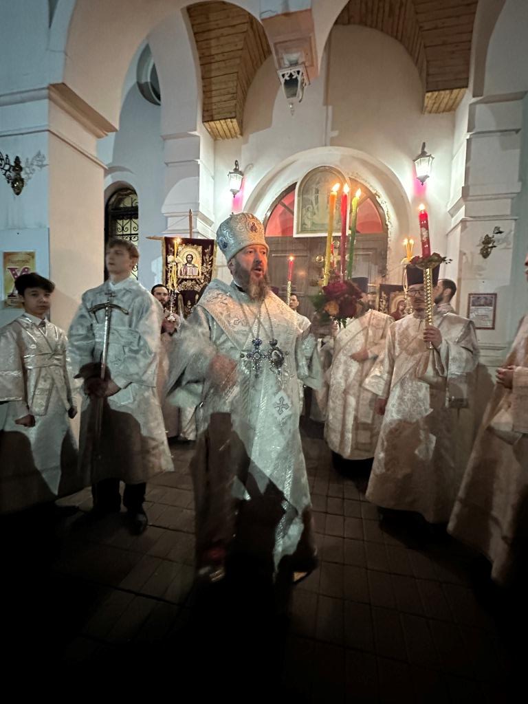 В ночь с 11 на 12 апреля 2026 года в Андреевском кафедральном соборе города Усть-Каменогорска Высокопреосвященнейший архиепископ Усть-Каменогорский и Семипалатинский Амфилохий возглавил полунощницу, крестный ход, Пасхальную заутреню и Божественную литургию святителя Иоанна Златоуста. Высокопреосвященнейшему Владыке сослужили: ключарь Андреевского собора иеромонах Никодим (Авдеев), клирики собора иерей Роман Подрезов, иерей Константин Дьяков, иеромонах Рафаил (Юстус), протодиакон Андрей Дудник, секретарь епархии диакон Илия Кван, диакон Кирилл Рамазанов.