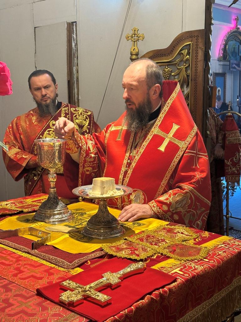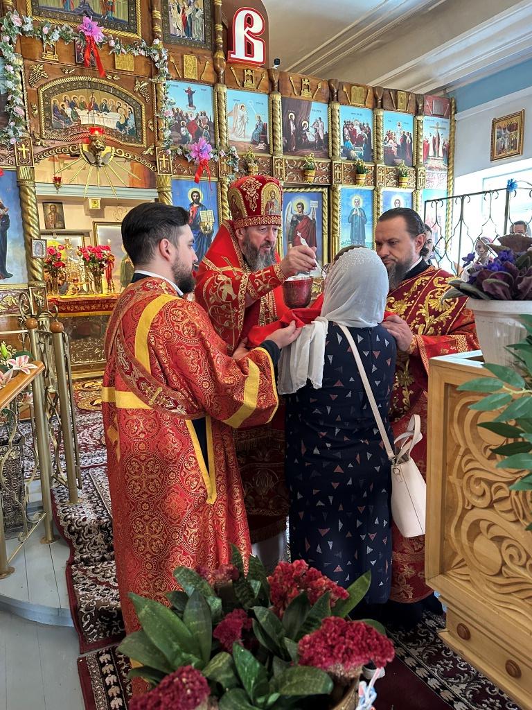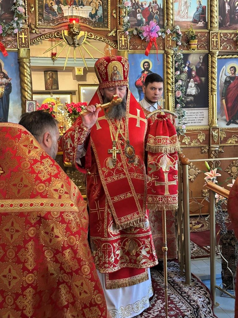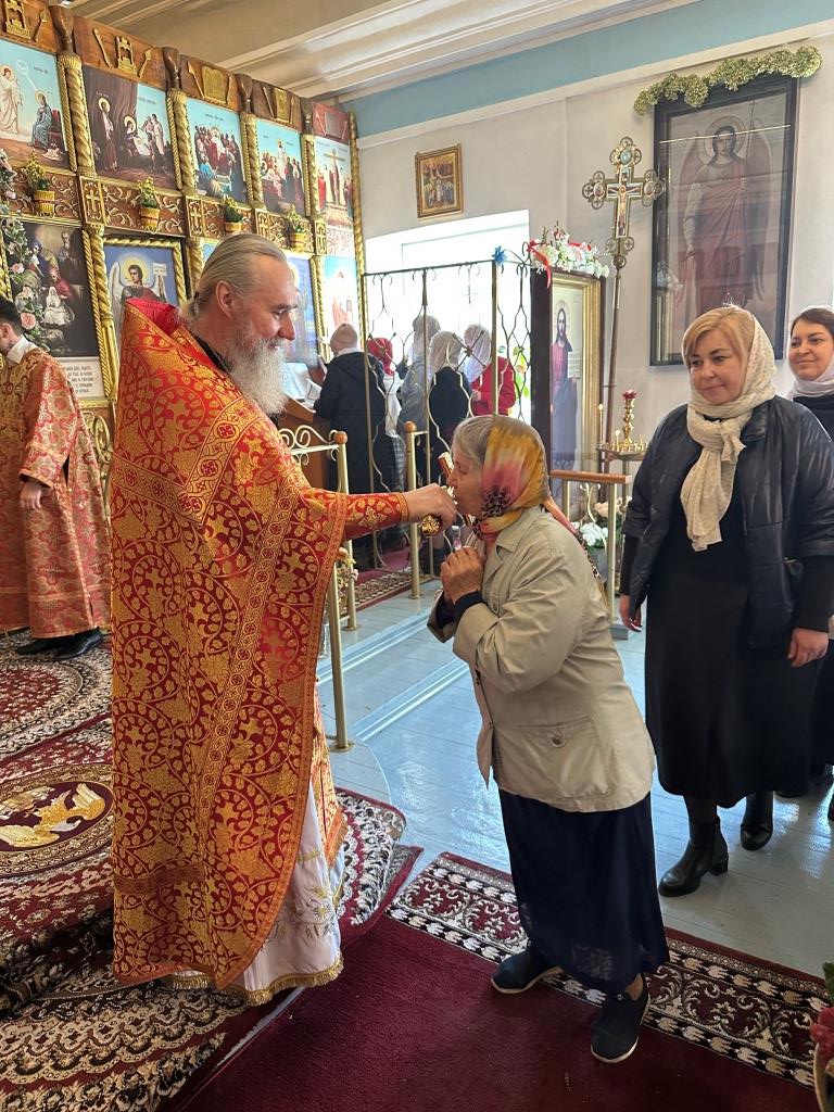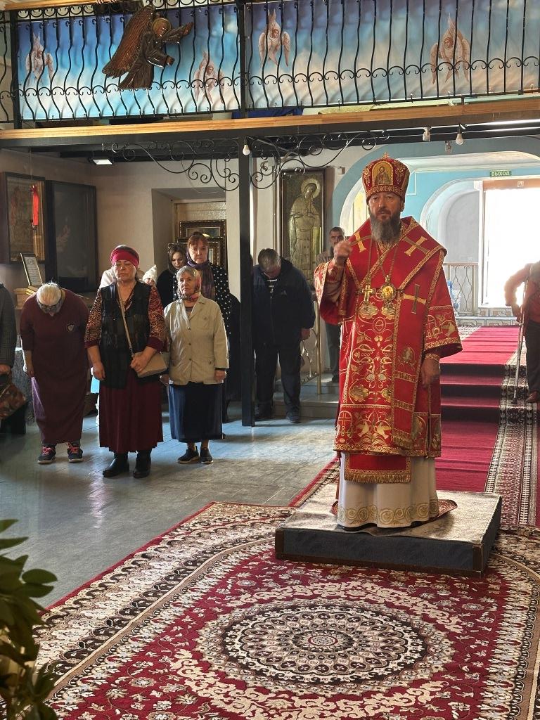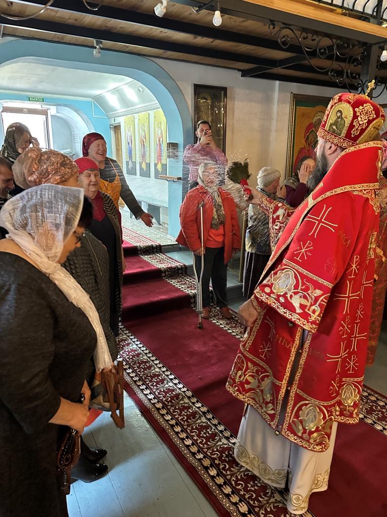 После проповеди Владыка Амфилохий призвал Божие благословение на прихожан и окропил молящихся святой водой.