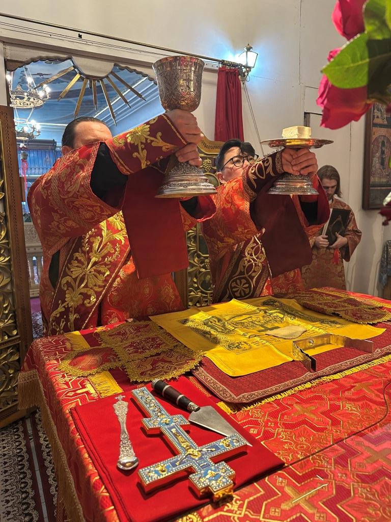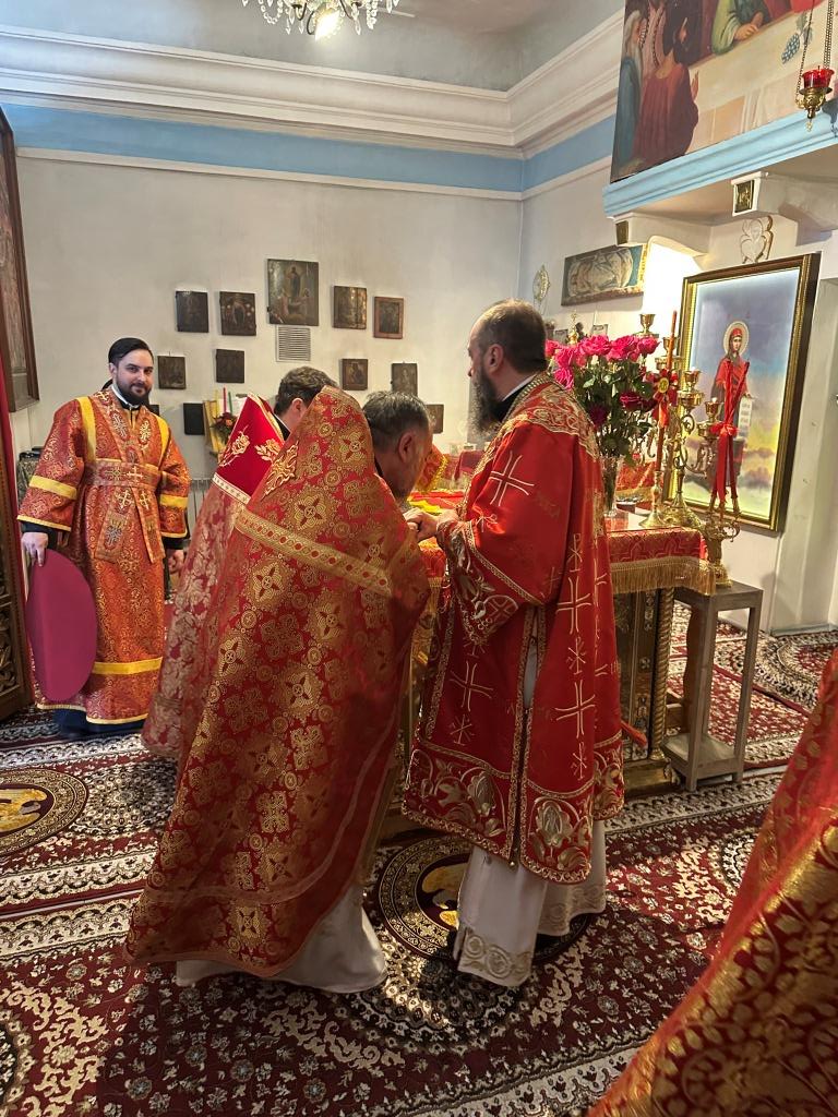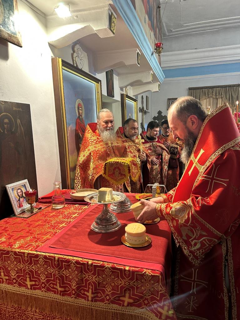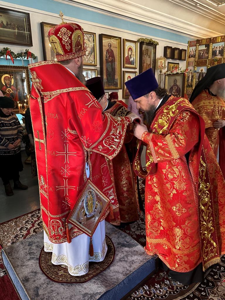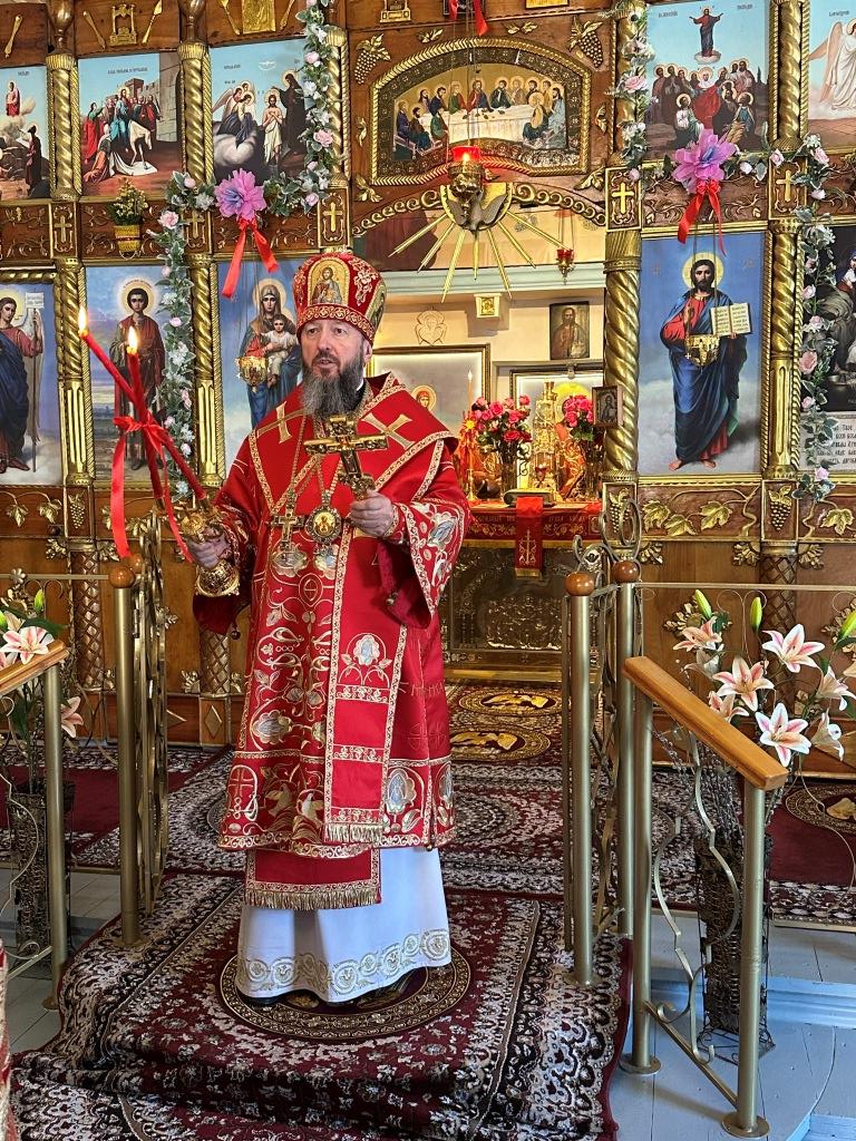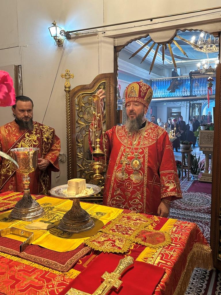 После проповеди Владыка Амфилохий призвал Божие благословение на прихожан и окропил молящихся святой водой.