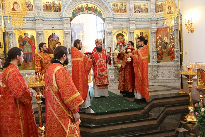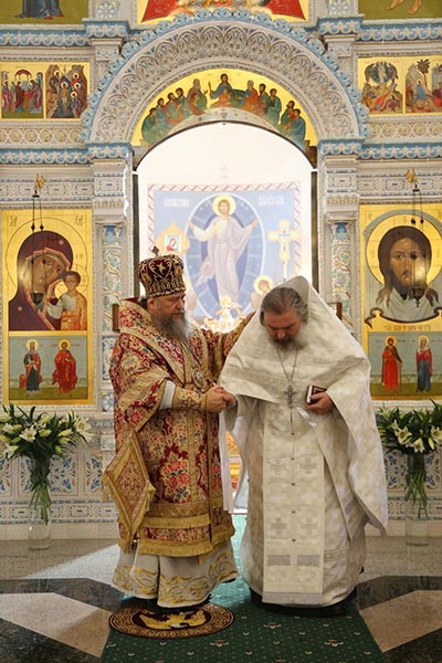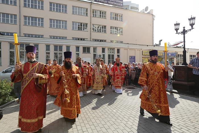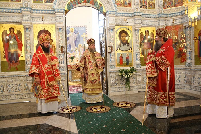 В Екатеринбурге митрополит Александр вместе с митрополитом Екатеринбургским и Верхотурским Кириллом и епископом Усть-Каменогорским и Семипалатинским Амфилохием совершили Божественную Литургию в воссозданном храме-колокольне в честь одного из отроков Ефесских - мученика Максимилиана.