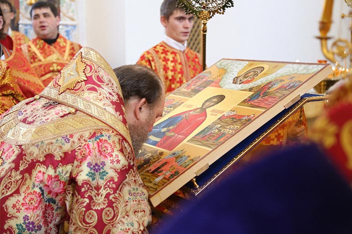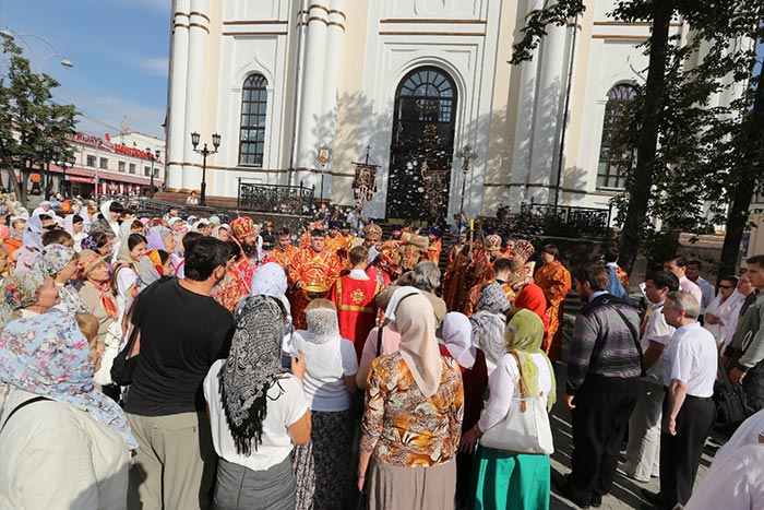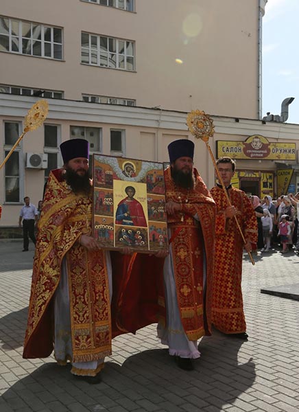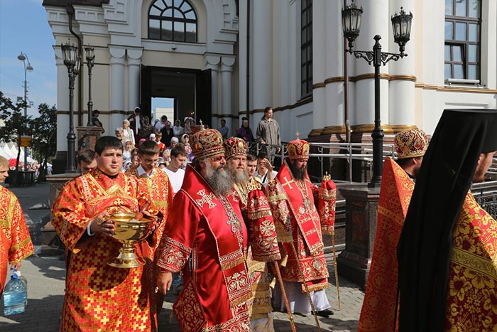 Богослужение завершилось крестным ходом, по окончании которого митрополит Кирилл тепло поздравил митрополита Александра, епископа Амфилохия, священнослужителей и верующих с престольным праздником Максимилиановской церкви.