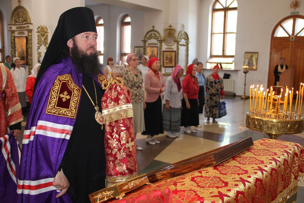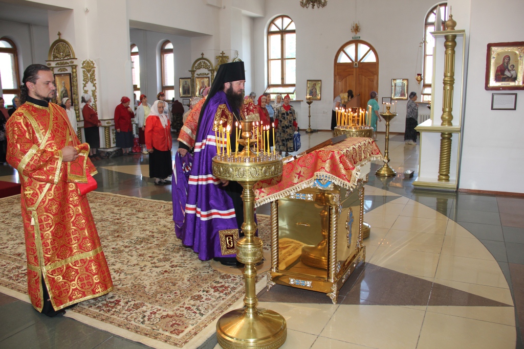 По отпусте епископ Амфилохий совершил молебен святому великомученику, после чего Преосвященный Владыка поздравил прихожан с престольным торжеством и обратился к верующим со словами Архипастырского наставления.